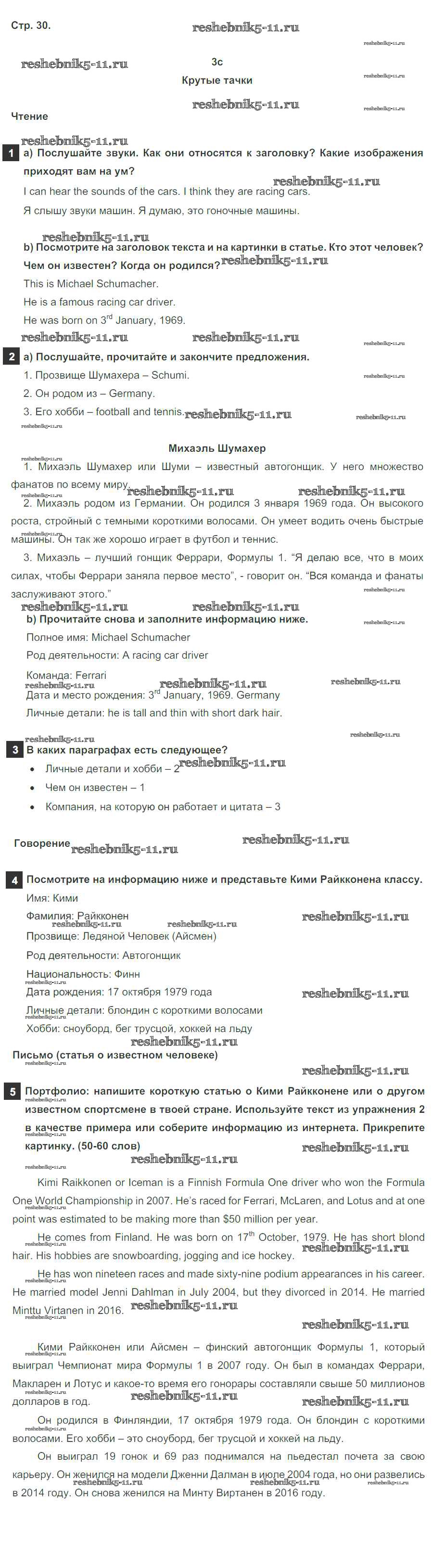Готовая домашняя работа с ответами по Английскому языку за 6 класс Ваулина, Дули, Эванс, Подоляко Учебник Spotlight Просвещение 2017 ФГОС - Module 3. Getting around. Страницы 30