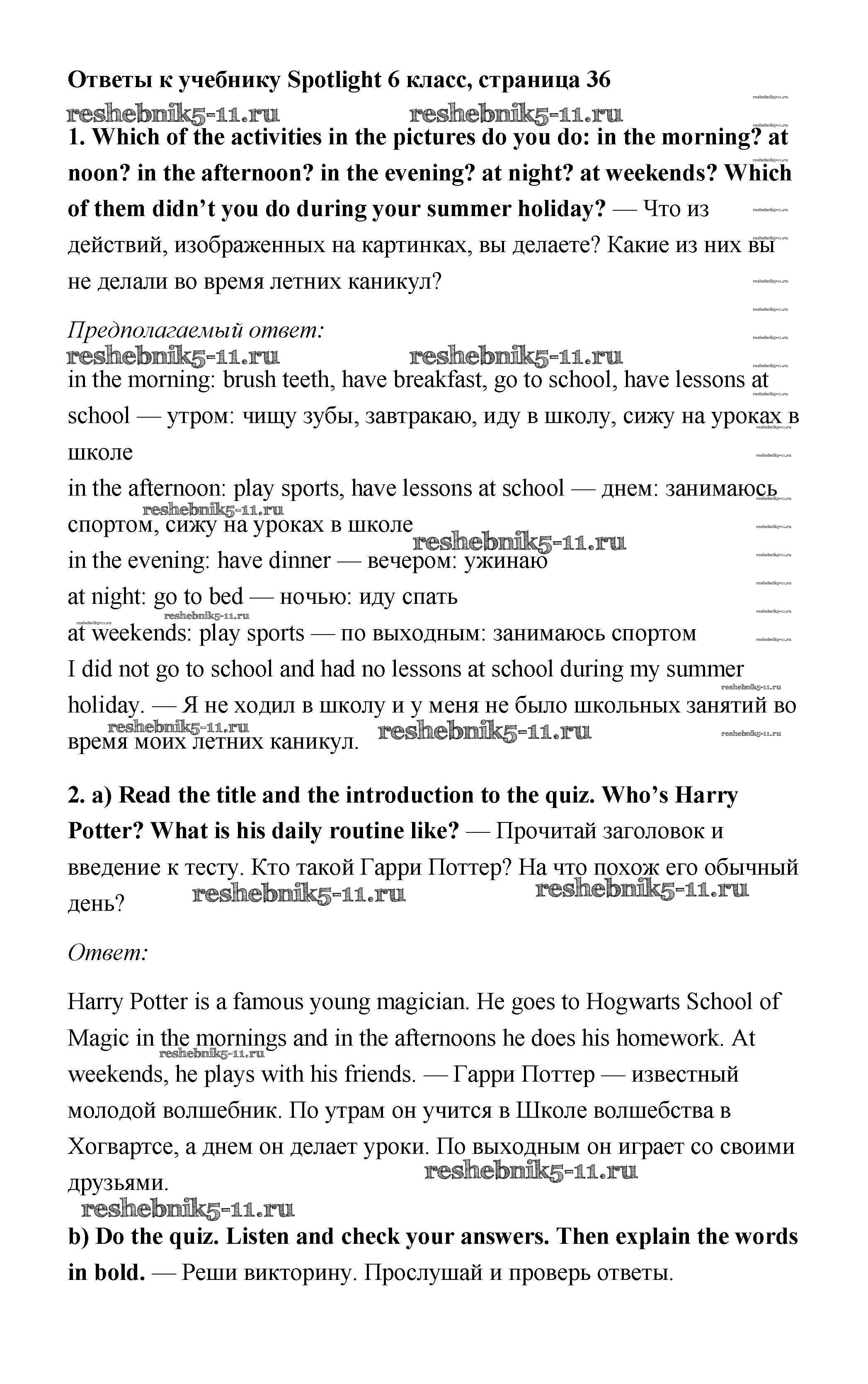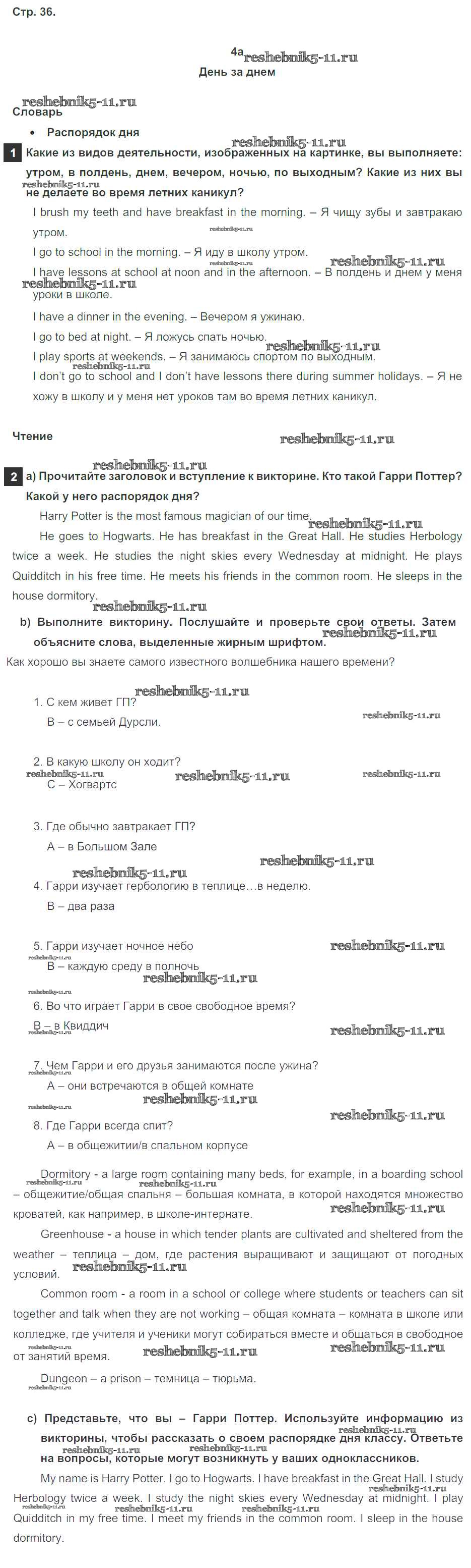 Готовая домашняя работа с ответами по Английскому языку за 6 класс Ваулина, Дули, Эванс, Подоляко Учебник Spotlight Просвещение 2017 ФГОС - Module 4. Day after day. Страницы 36