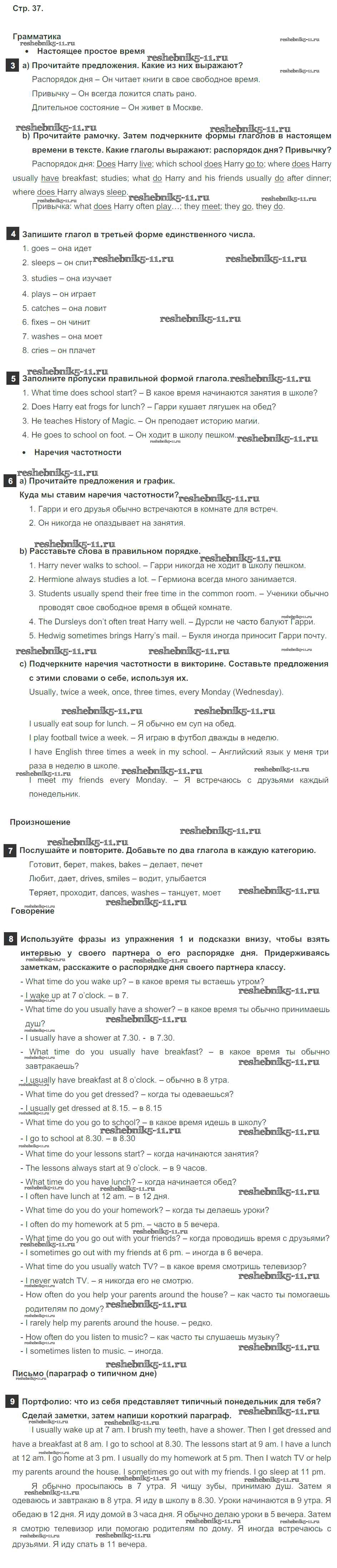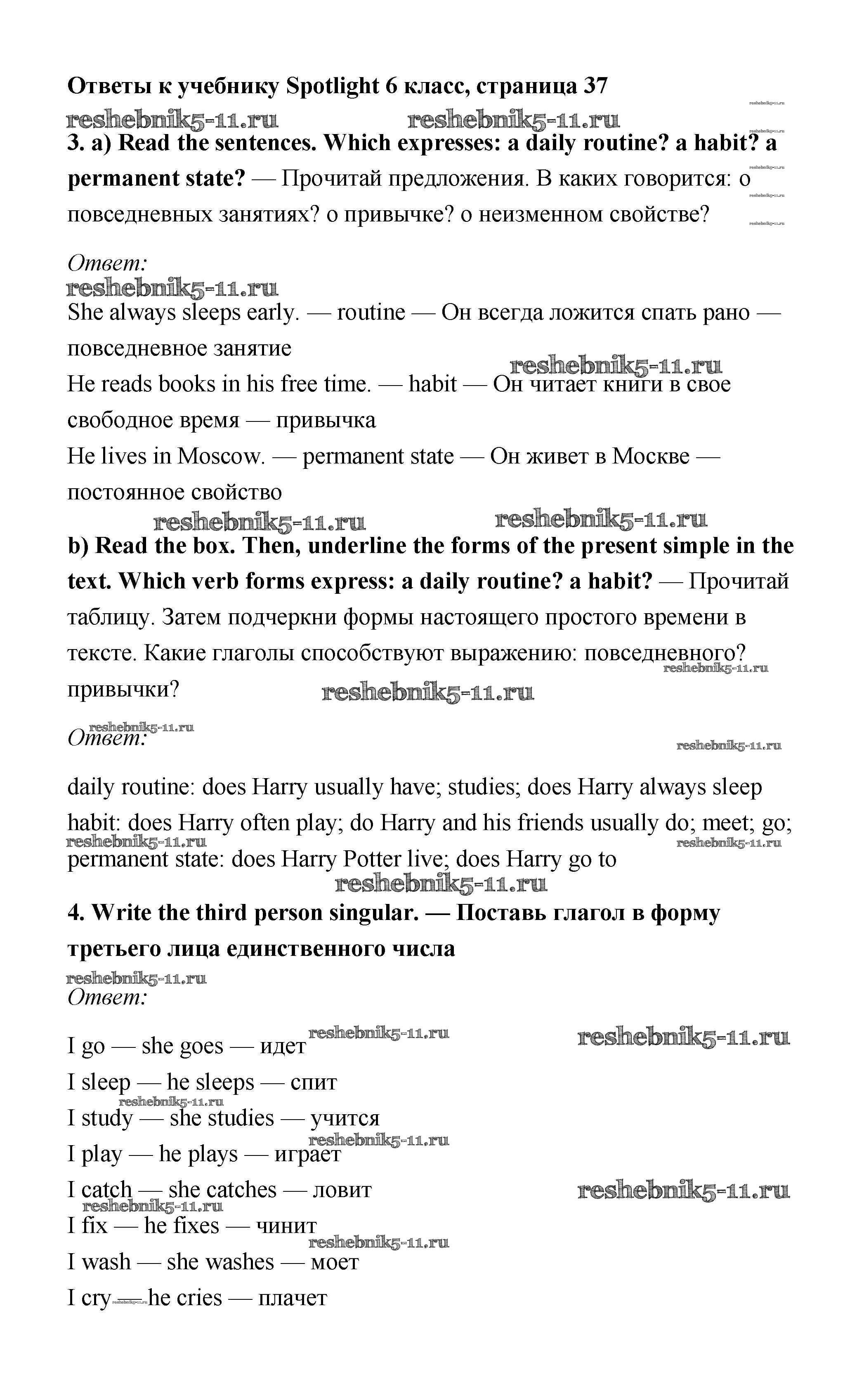 Готовая домашняя работа с ответами по Английскому языку за 6 класс Ваулина, Дули, Эванс, Подоляко Учебник Spotlight Просвещение 2017 ФГОС - Module 4. Day after day. Страницы 37