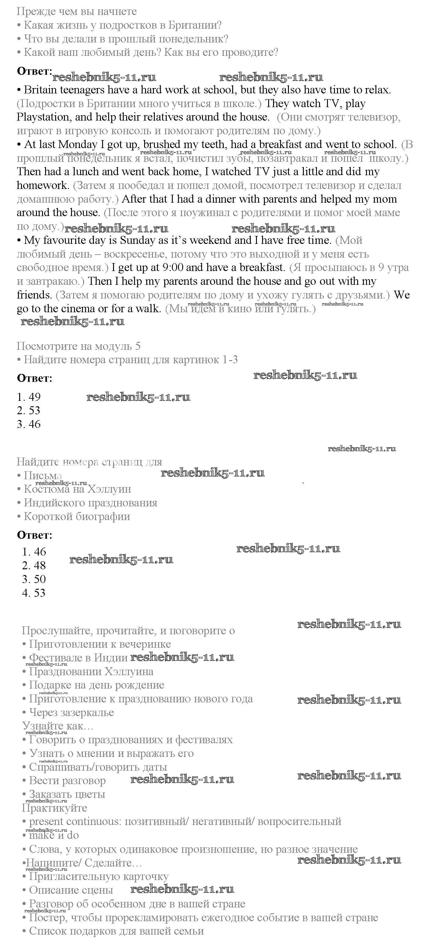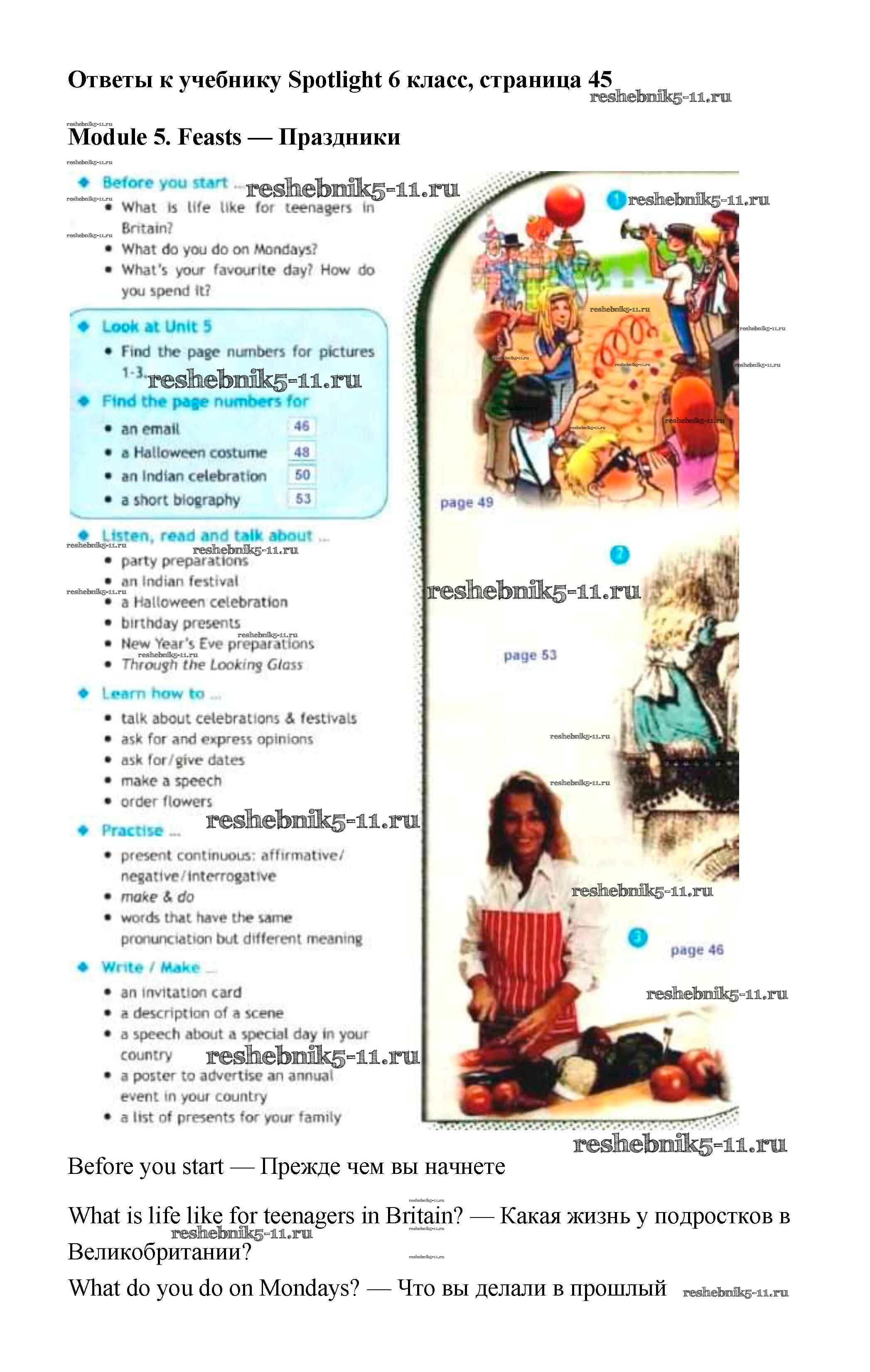 Готовая домашняя работа с ответами по Английскому языку за 6 класс Ваулина, Дули, Эванс, Подоляко Учебник Spotlight Просвещение 2017 ФГОС - Module 5. Feasts. Страницы 45