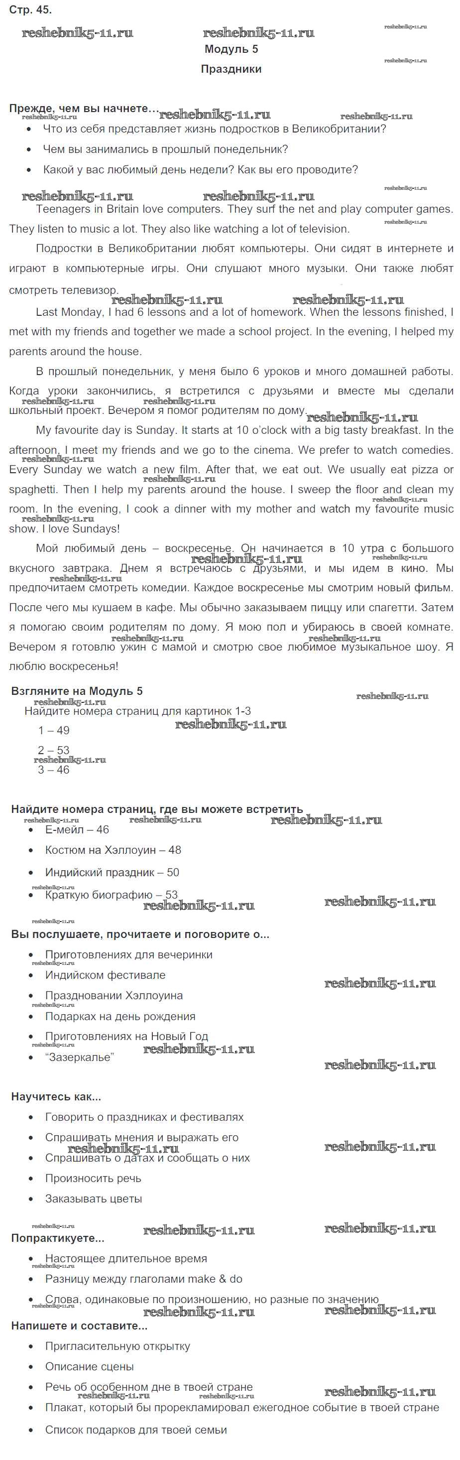 Английский язык за 6 класс Ваулина Учебник Spotlight Просвещение module 5. страница 45