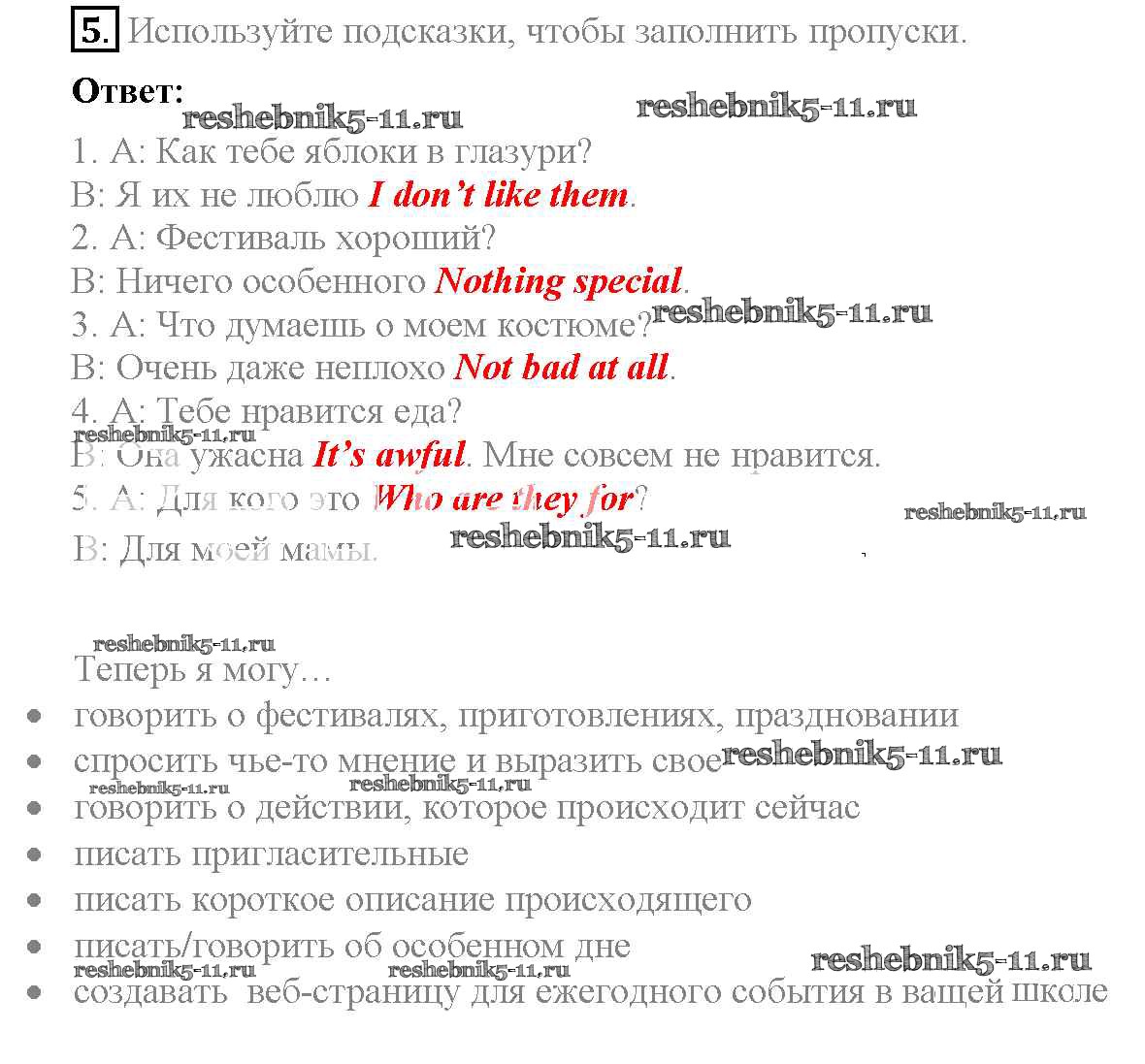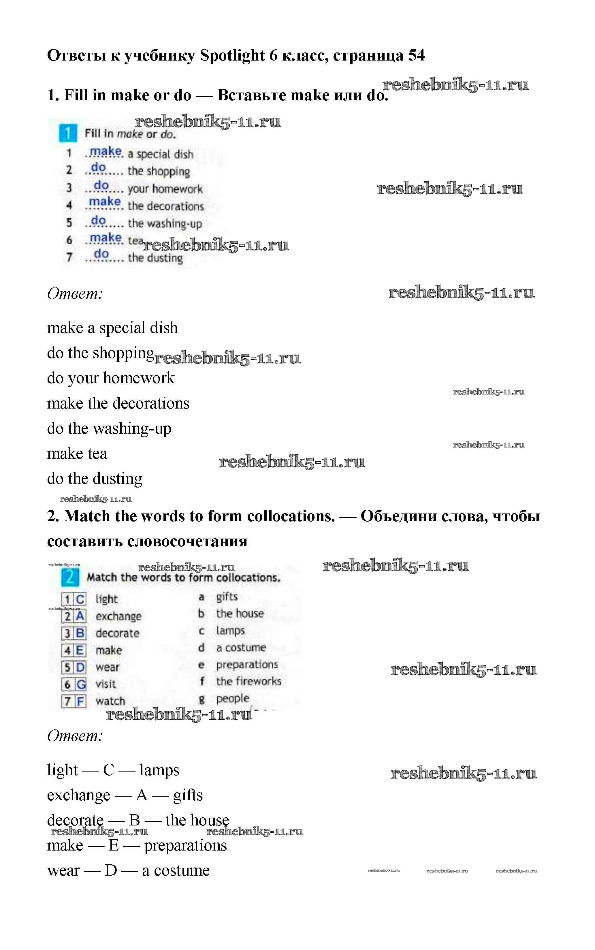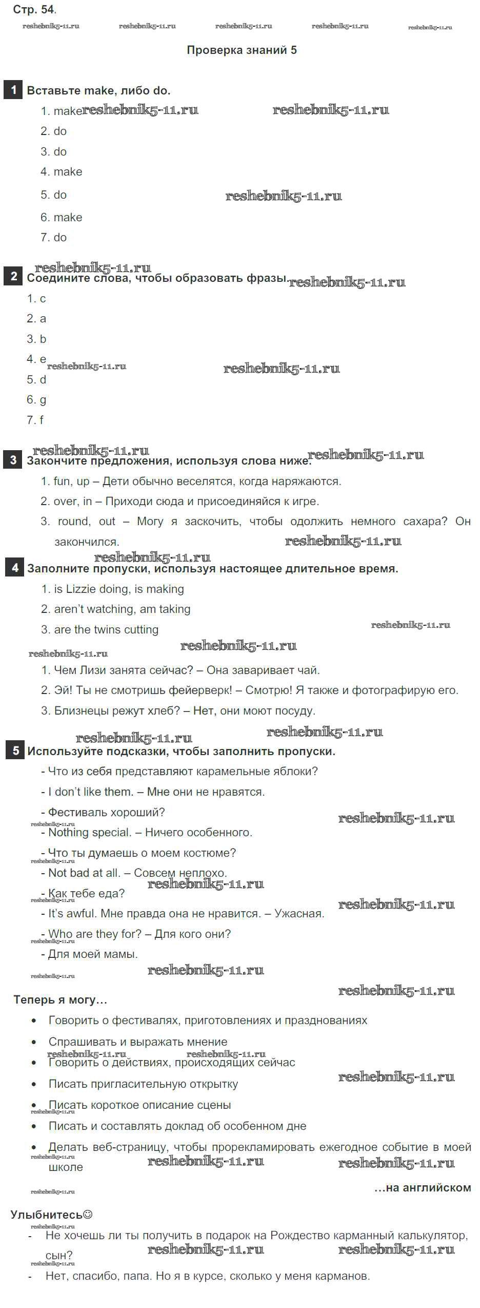 Готовая домашняя работа с ответами по Английскому языку за 6 класс Ваулина, Дули, Эванс, Подоляко Учебник Spotlight Просвещение 2017 ФГОС - Module 5. Feasts. Страницы 54