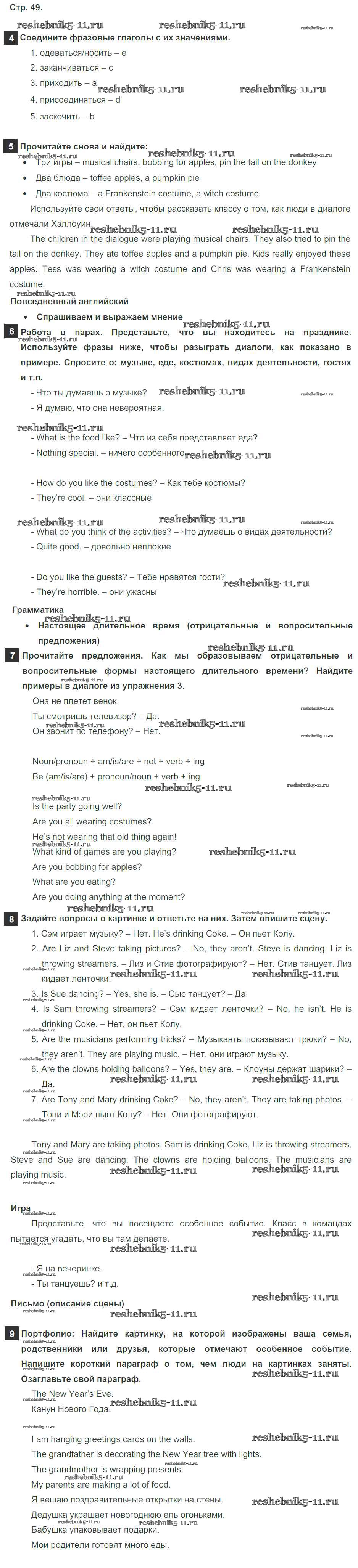 Готовая домашняя работа с ответами по Английскому языку за 6 класс Ваулина, Дули, Эванс, Подоляко Учебник Spotlight Просвещение 2017 ФГОС - Module 5. Feasts. Страницы 49