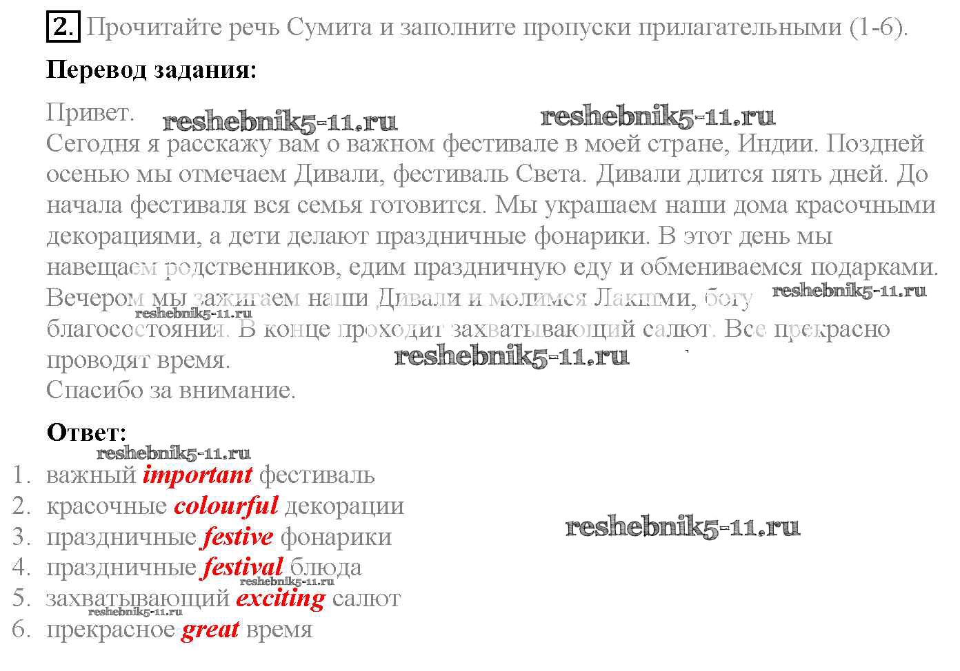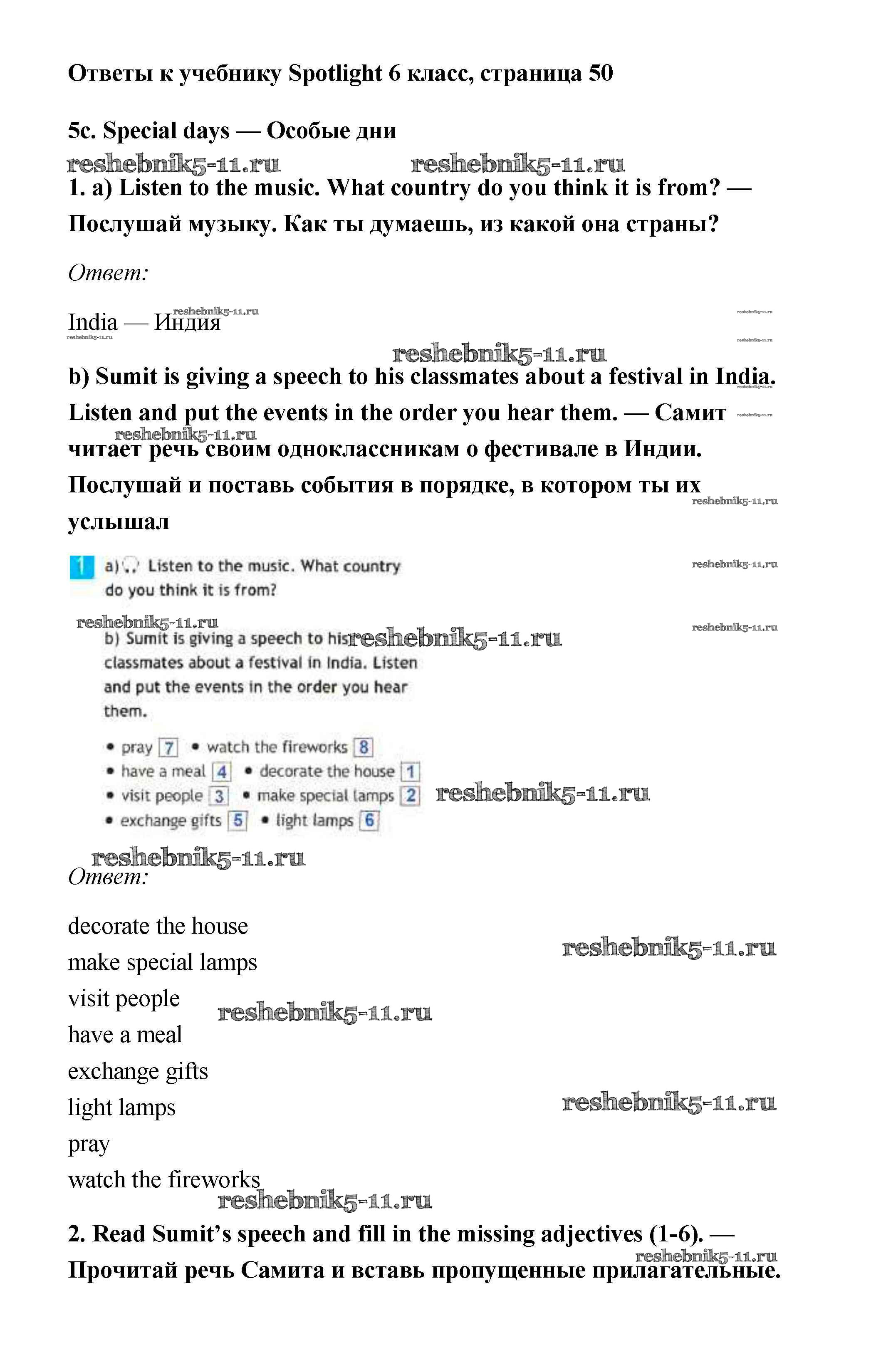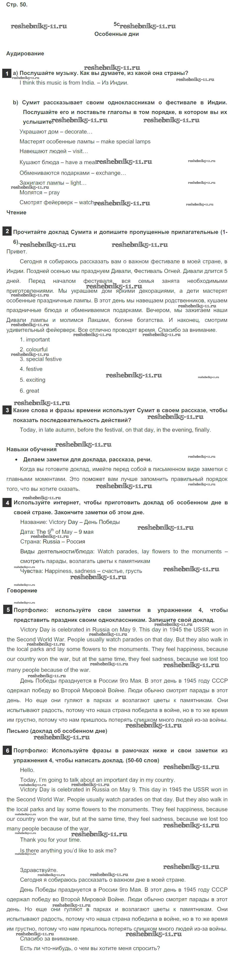 Готовая домашняя работа с ответами по Английскому языку за 6 класс Ваулина, Дули, Эванс, Подоляко Учебник Spotlight Просвещение 2017 ФГОС - Module 5. Feasts. Страницы 50
