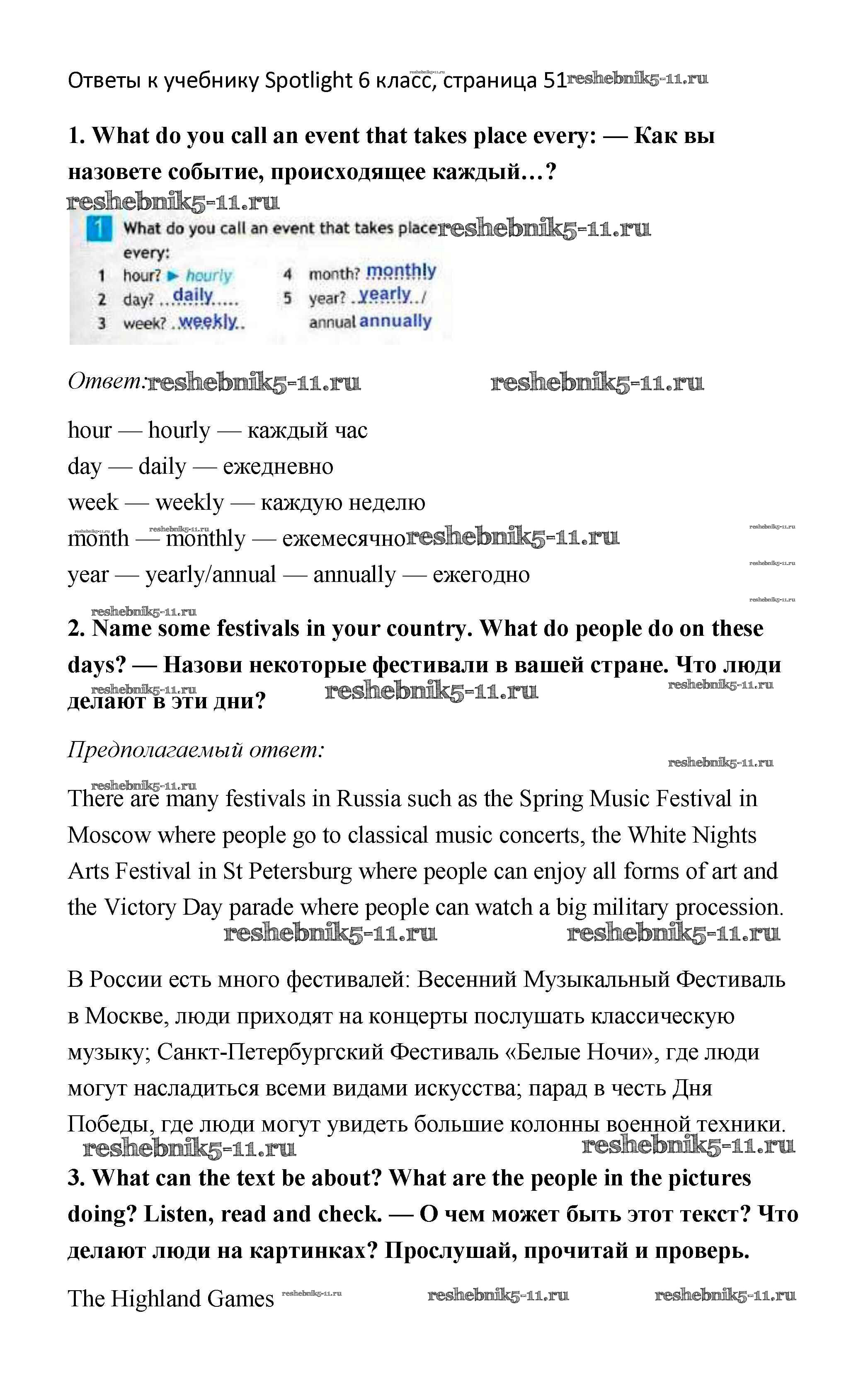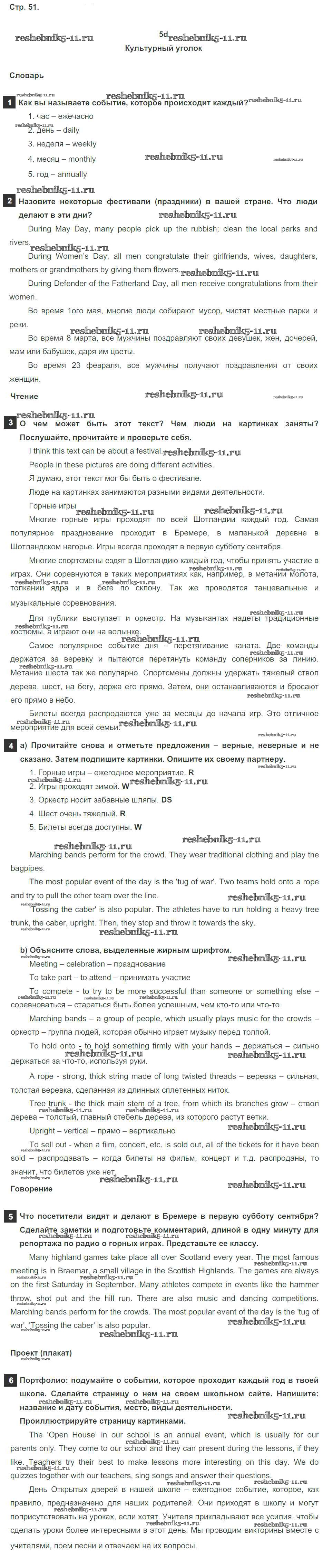 Готовая домашняя работа с ответами по Английскому языку за 6 класс Ваулина, Дули, Эванс, Подоляко Учебник Spotlight Просвещение 2017 ФГОС - Module 5. Feasts. Страницы 51