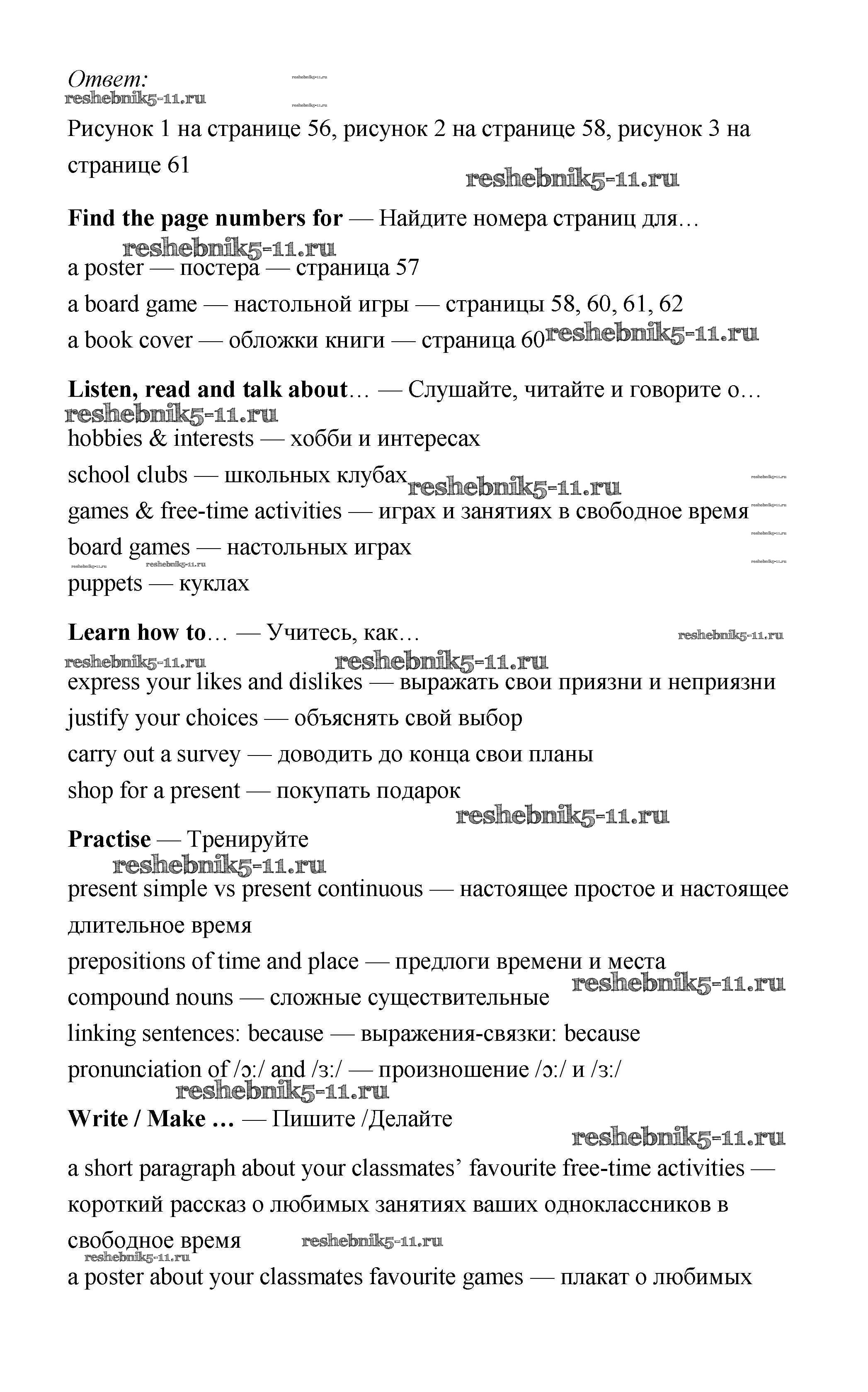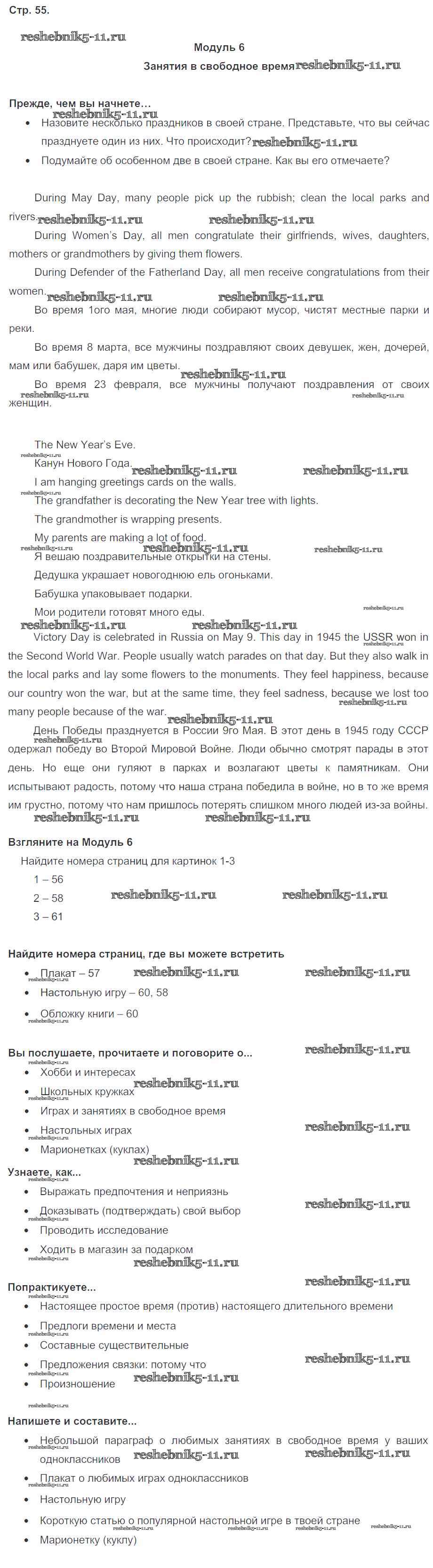Готовая домашняя работа с ответами по Английскому языку за 6 класс Ваулина, Дули, Эванс, Подоляко Учебник Spotlight Просвещение 2017 ФГОС - Module 6. Leisure activities. Страницы 55