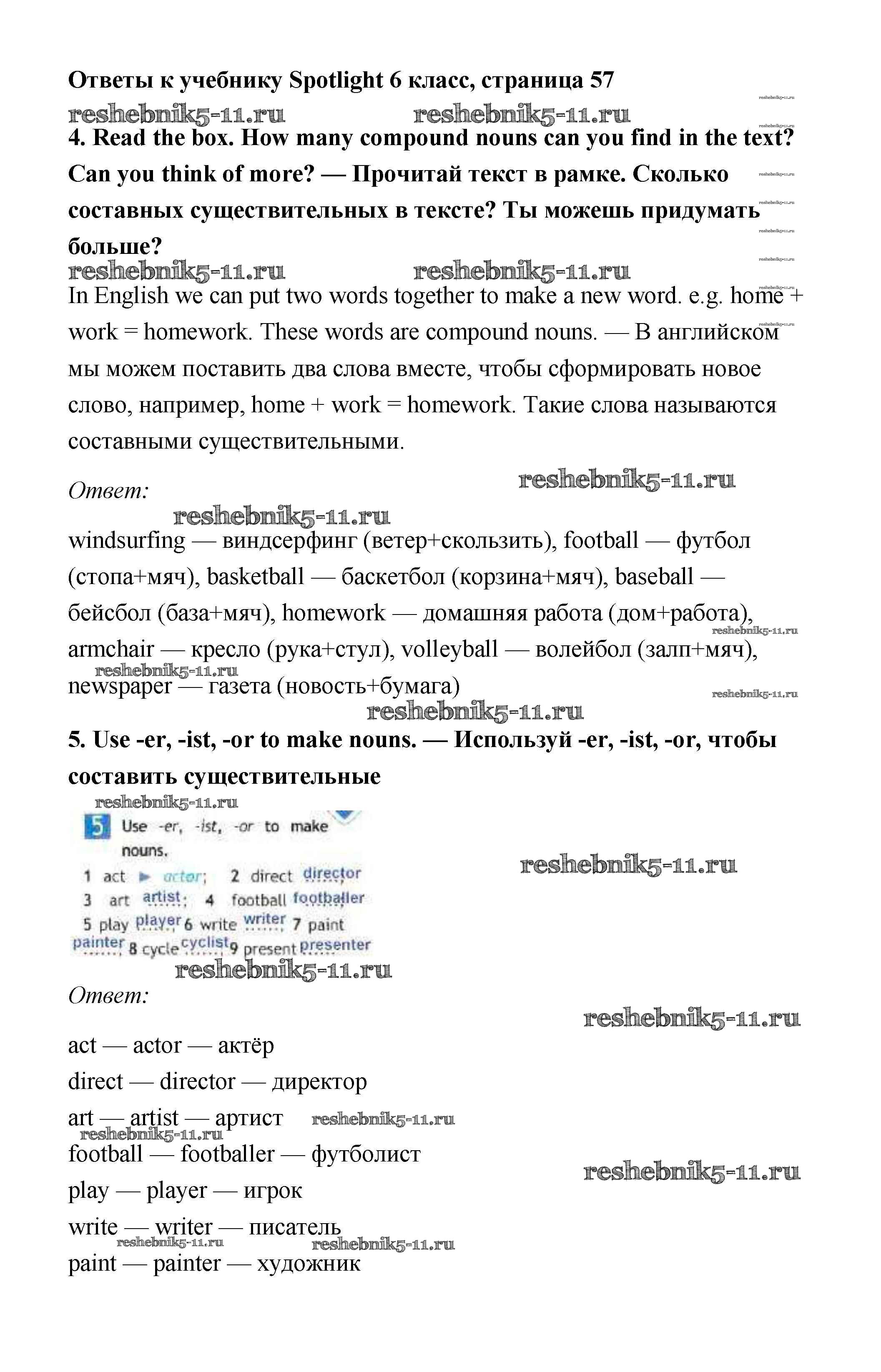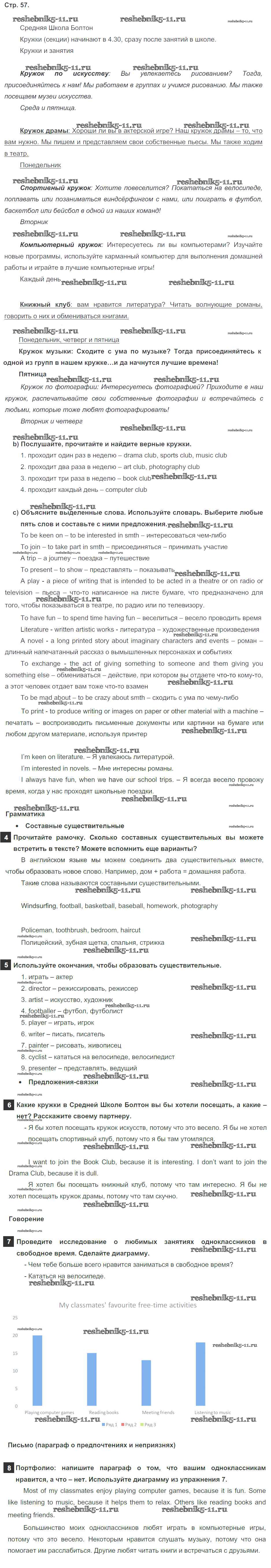 Готовая домашняя работа с ответами по Английскому языку за 6 класс Ваулина, Дули, Эванс, Подоляко Учебник Spotlight Просвещение 2017 ФГОС - Module 6. Leisure activities. Страницы 57