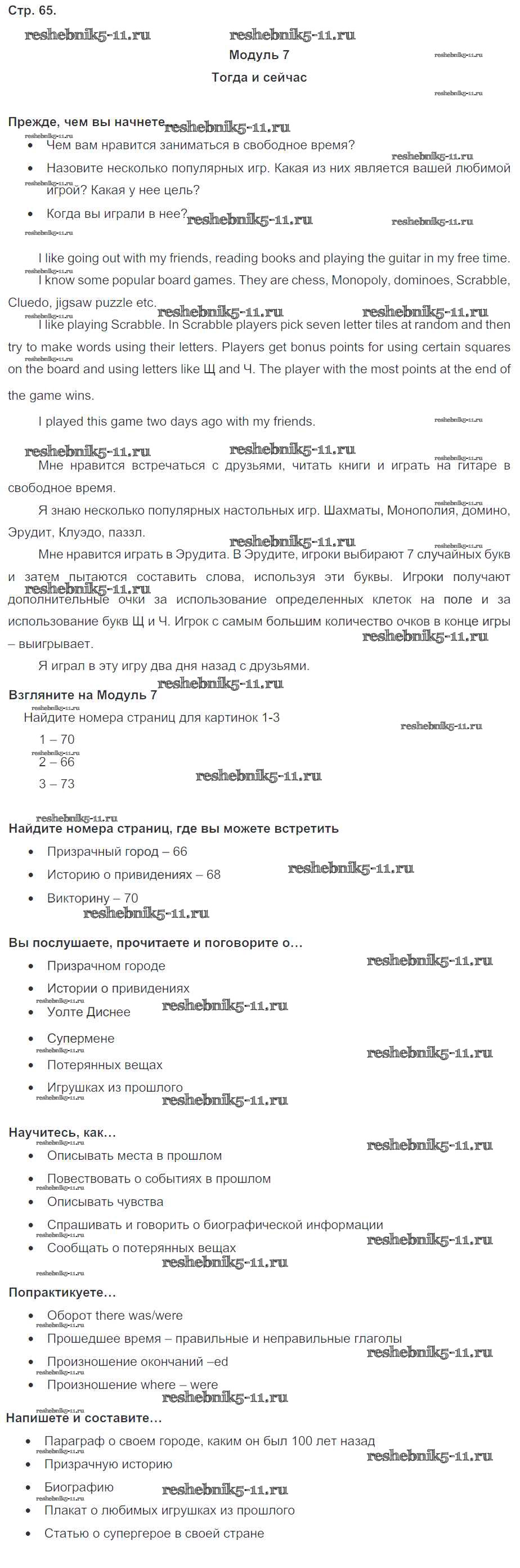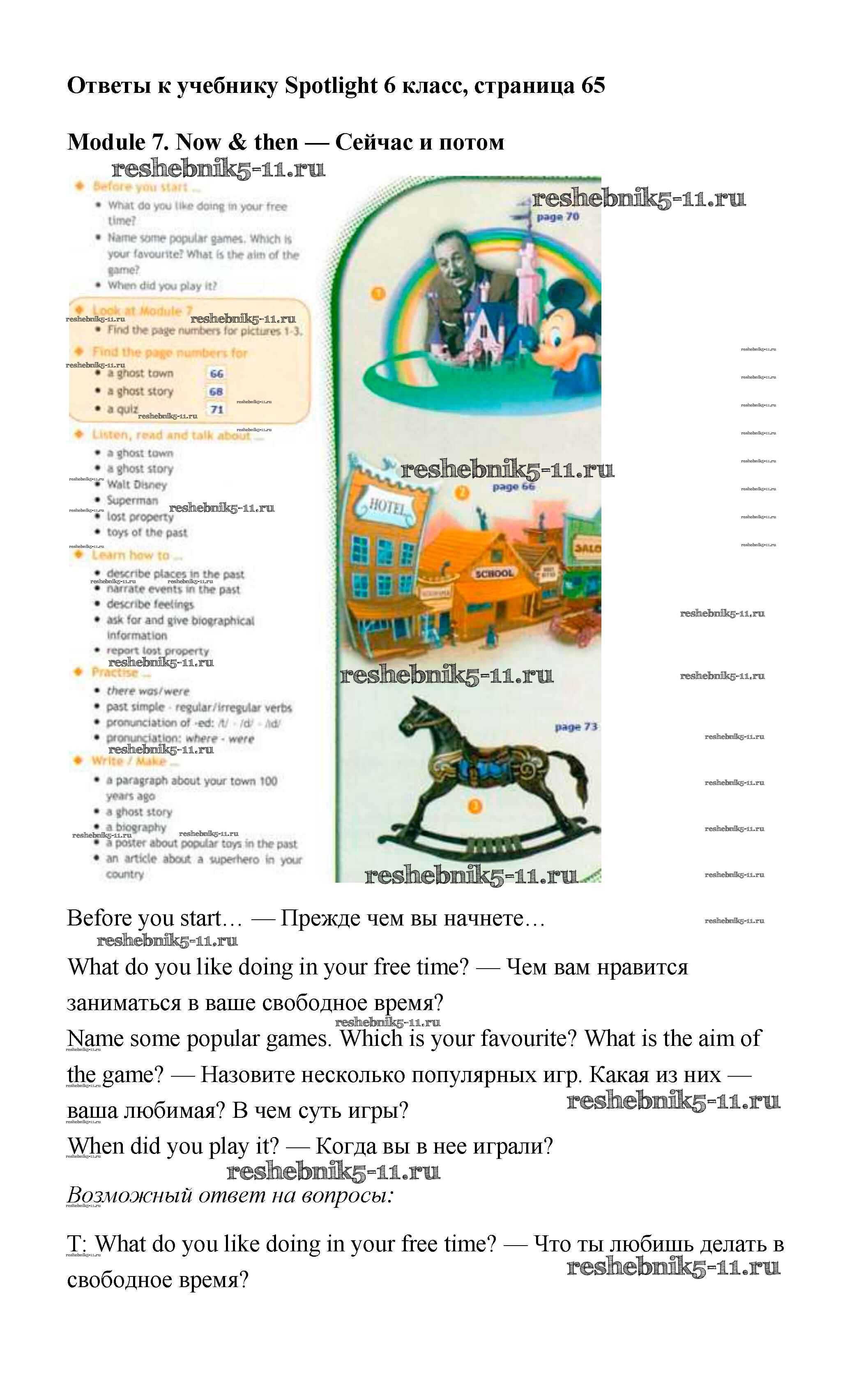 Готовая домашняя работа с ответами по Английскому языку за 6 класс Ваулина, Дули, Эванс, Подоляко Учебник Spotlight Просвещение 2017 ФГОС - Module 7. Now & then. Страницы 65