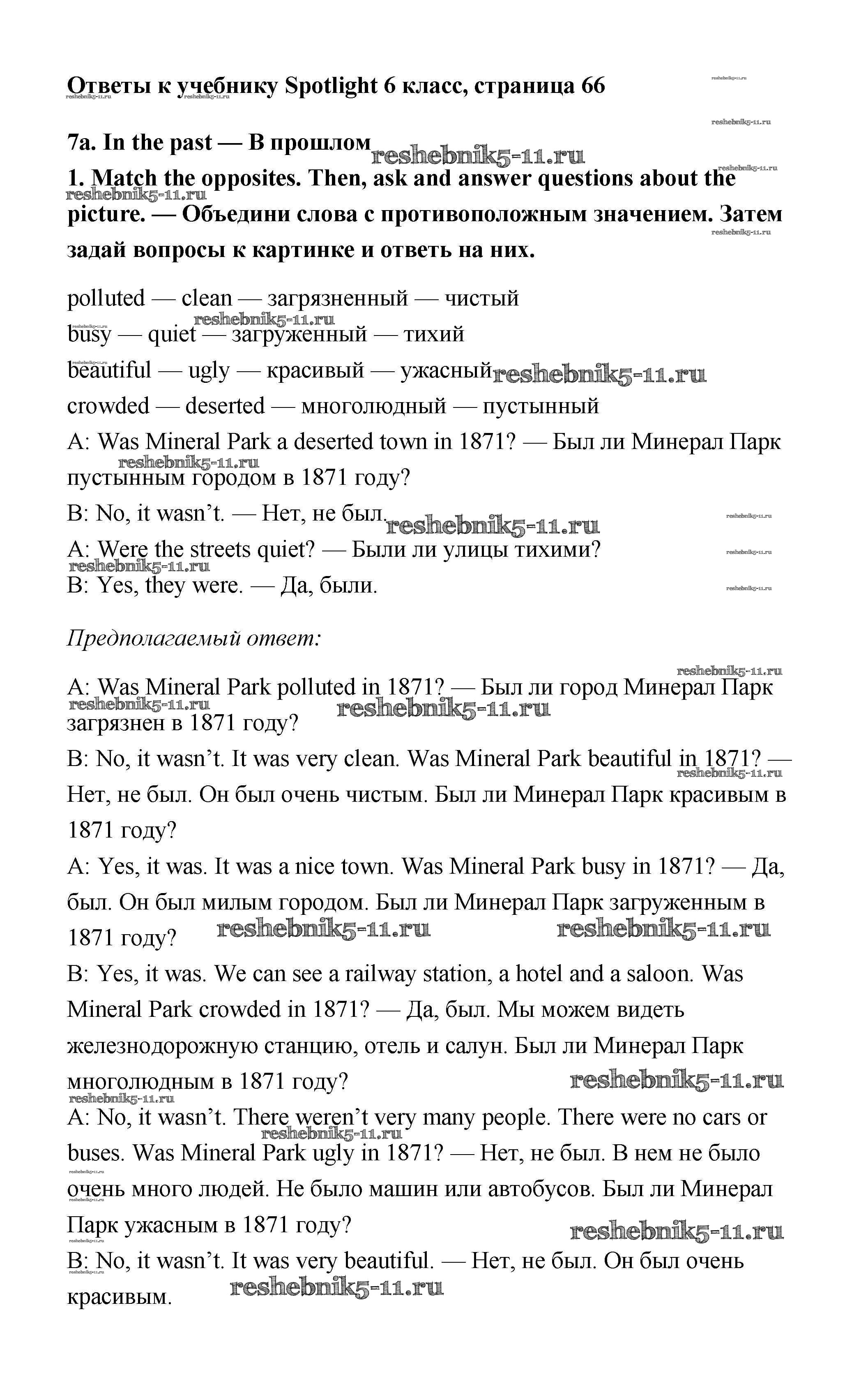 Готовая домашняя работа с ответами по Английскому языку за 6 класс Ваулина, Дули, Эванс, Подоляко Учебник Spotlight Просвещение 2017 ФГОС - Module 7. Now & then. Страницы 66