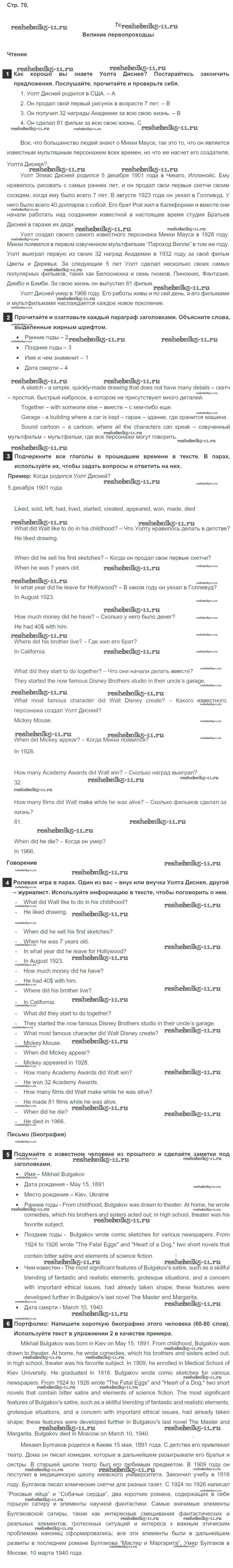 Готовая домашняя работа с ответами по Английскому языку за 6 класс Ваулина, Дули, Эванс, Подоляко Учебник Spotlight Просвещение 2017 ФГОС - Module 7. Now & then. Страницы 70