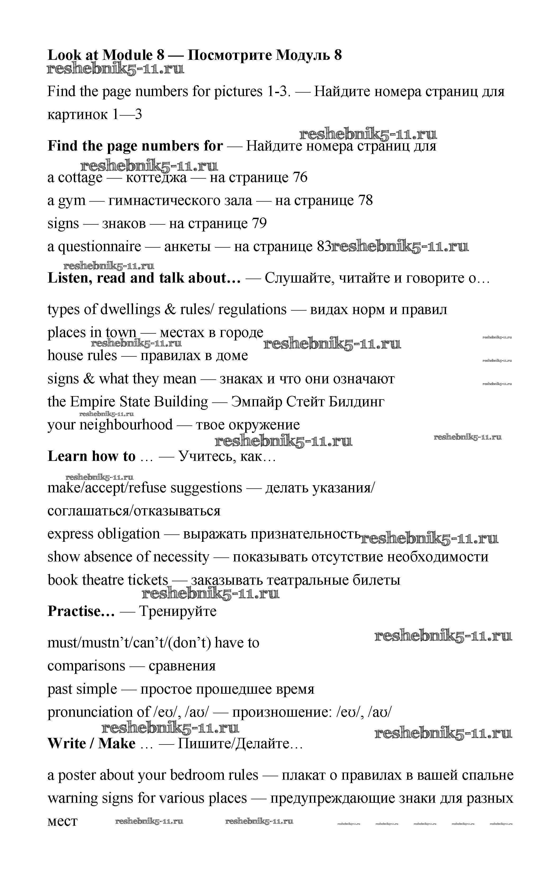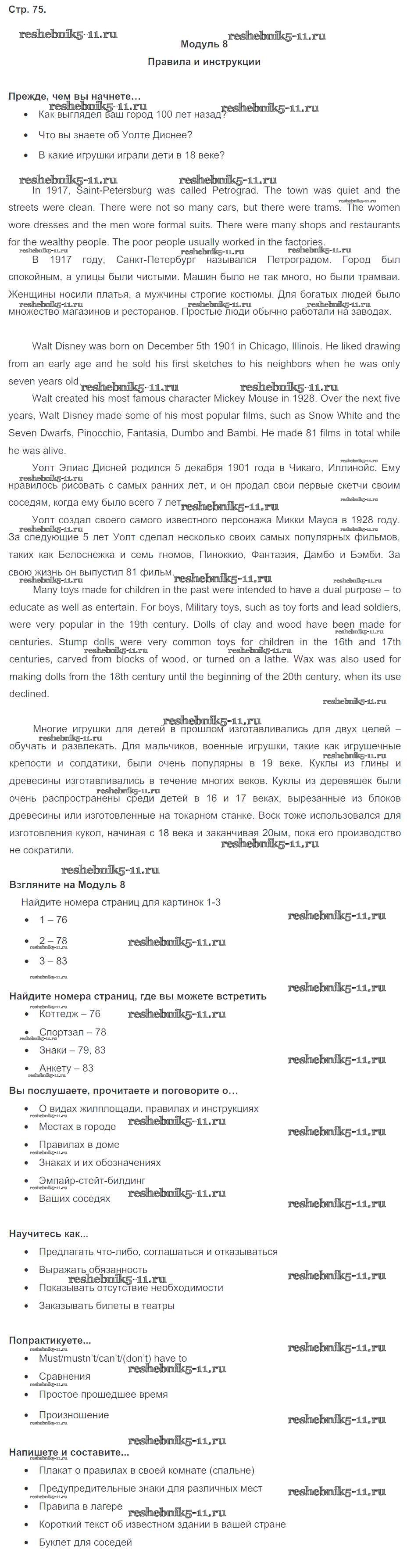 Готовая домашняя работа с ответами по Английскому языку за 6 класс Ваулина, Дули, Эванс, Подоляко Учебник Spotlight Просвещение 2017 ФГОС - Module 8. Rules & Regulations. Страницы 75