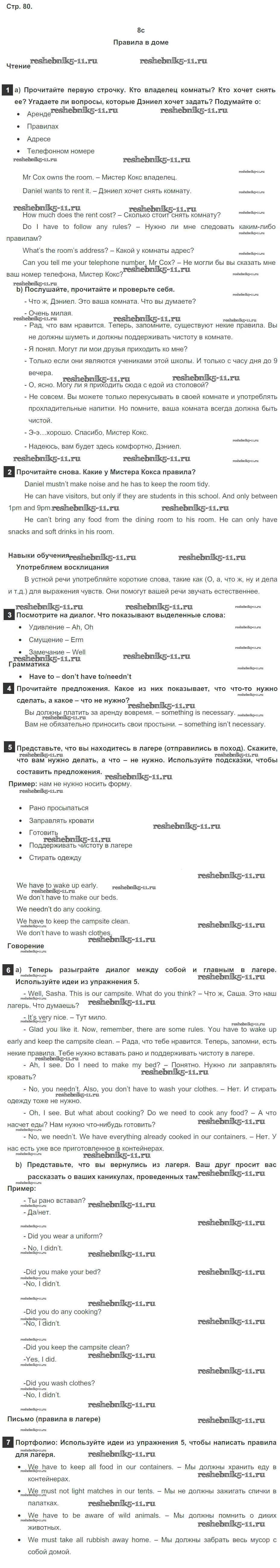 Готовая домашняя работа с ответами по Английскому языку за 6 класс Ваулина, Дули, Эванс, Подоляко Учебник Spotlight Просвещение 2017 ФГОС - Module 8. Rules & Regulations. Страницы 80