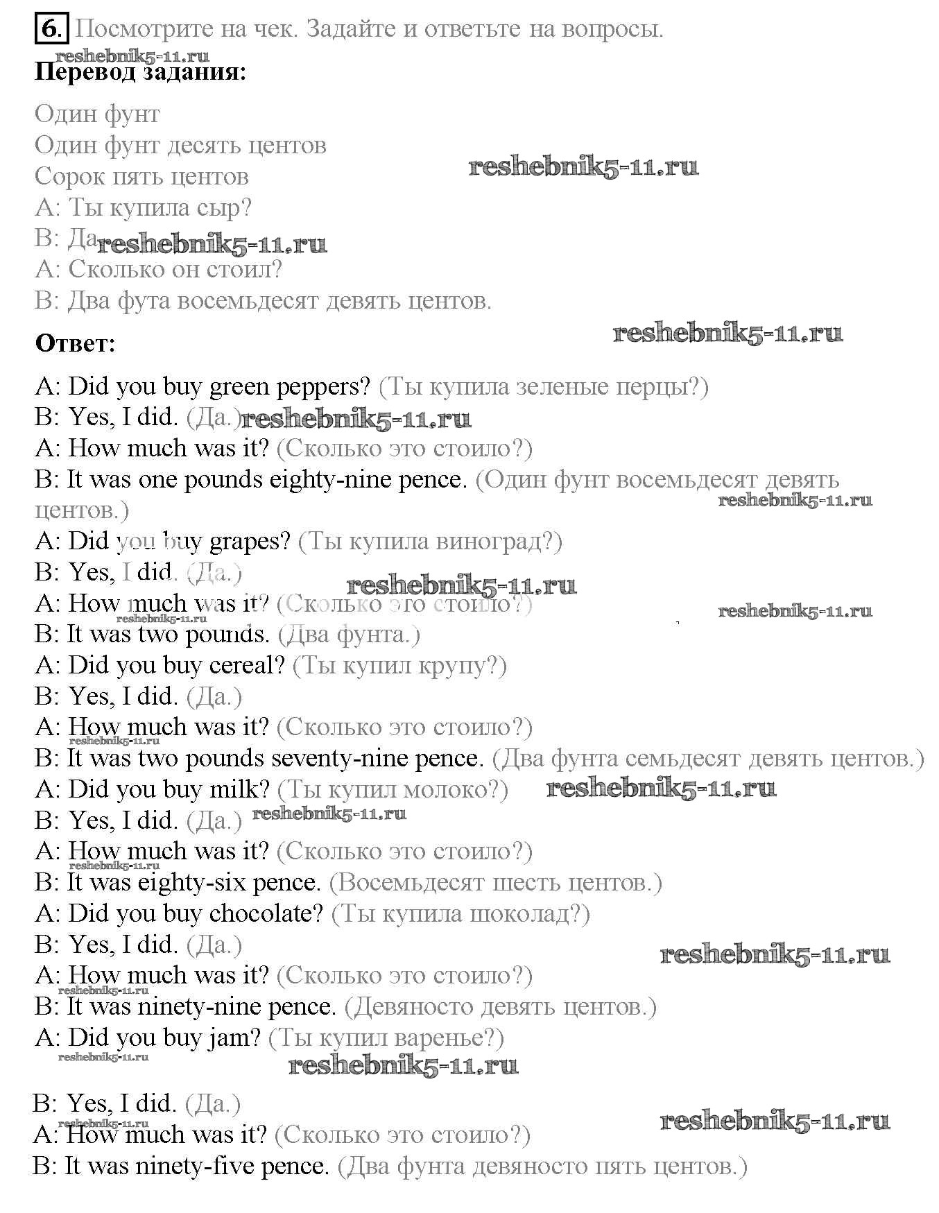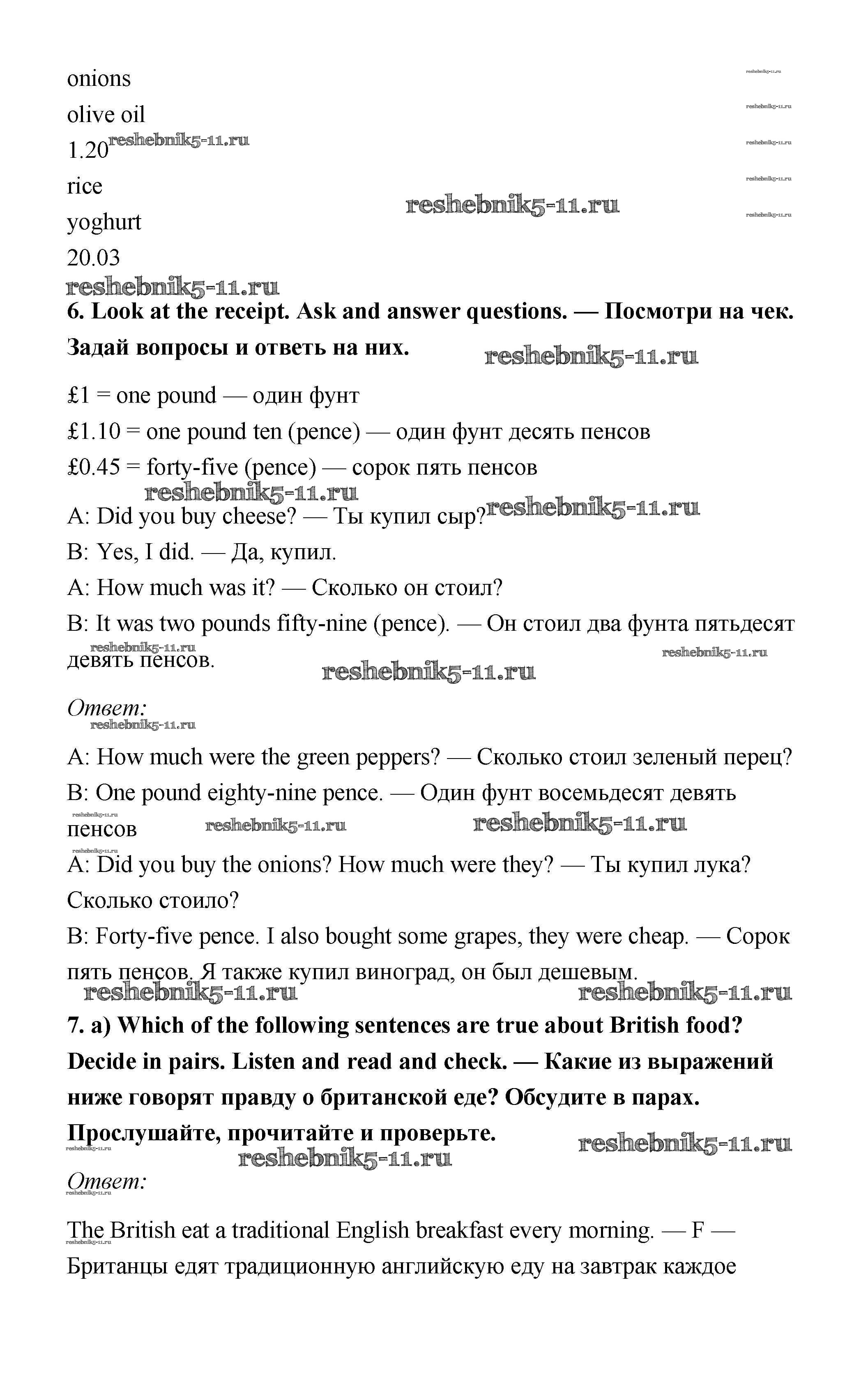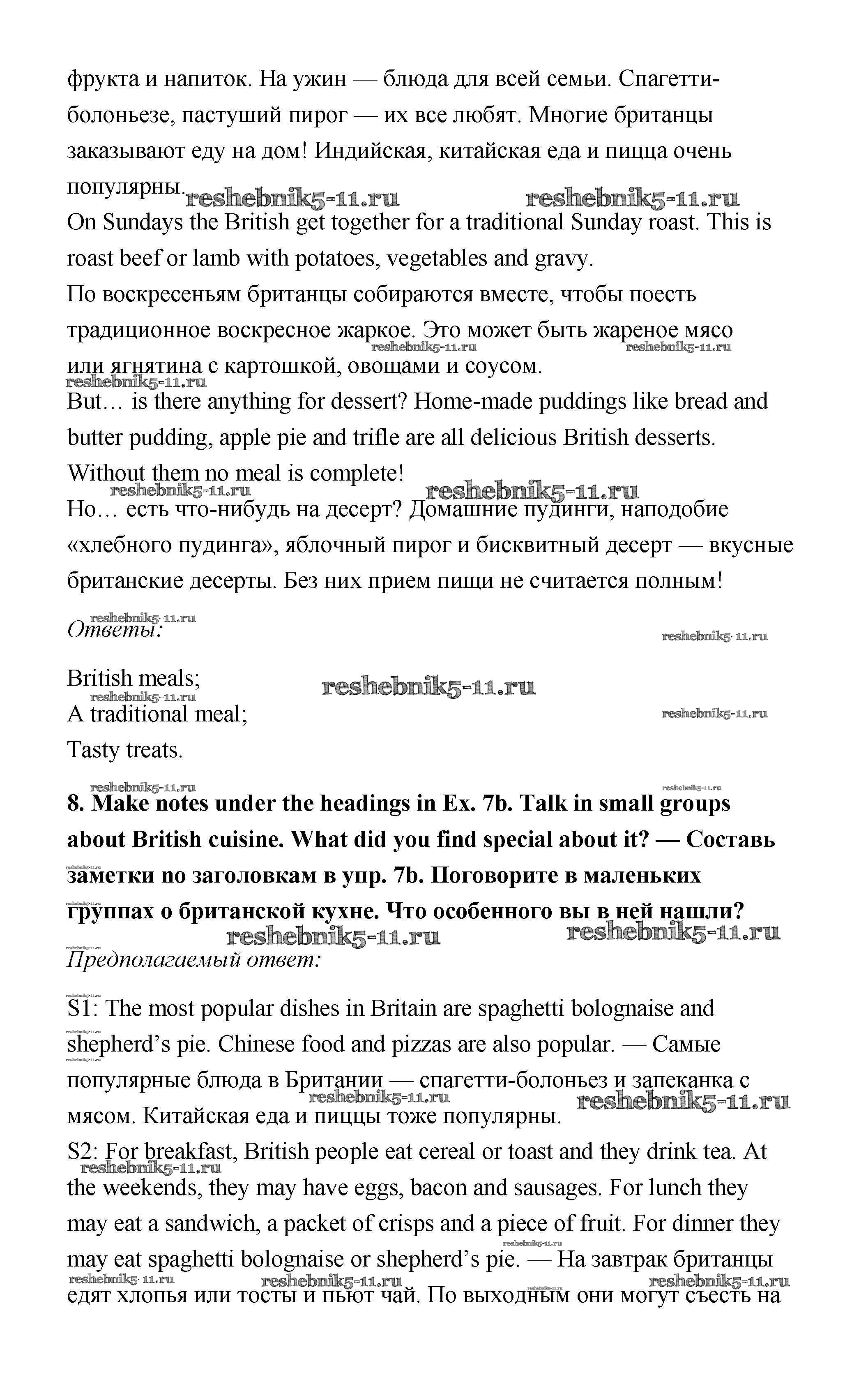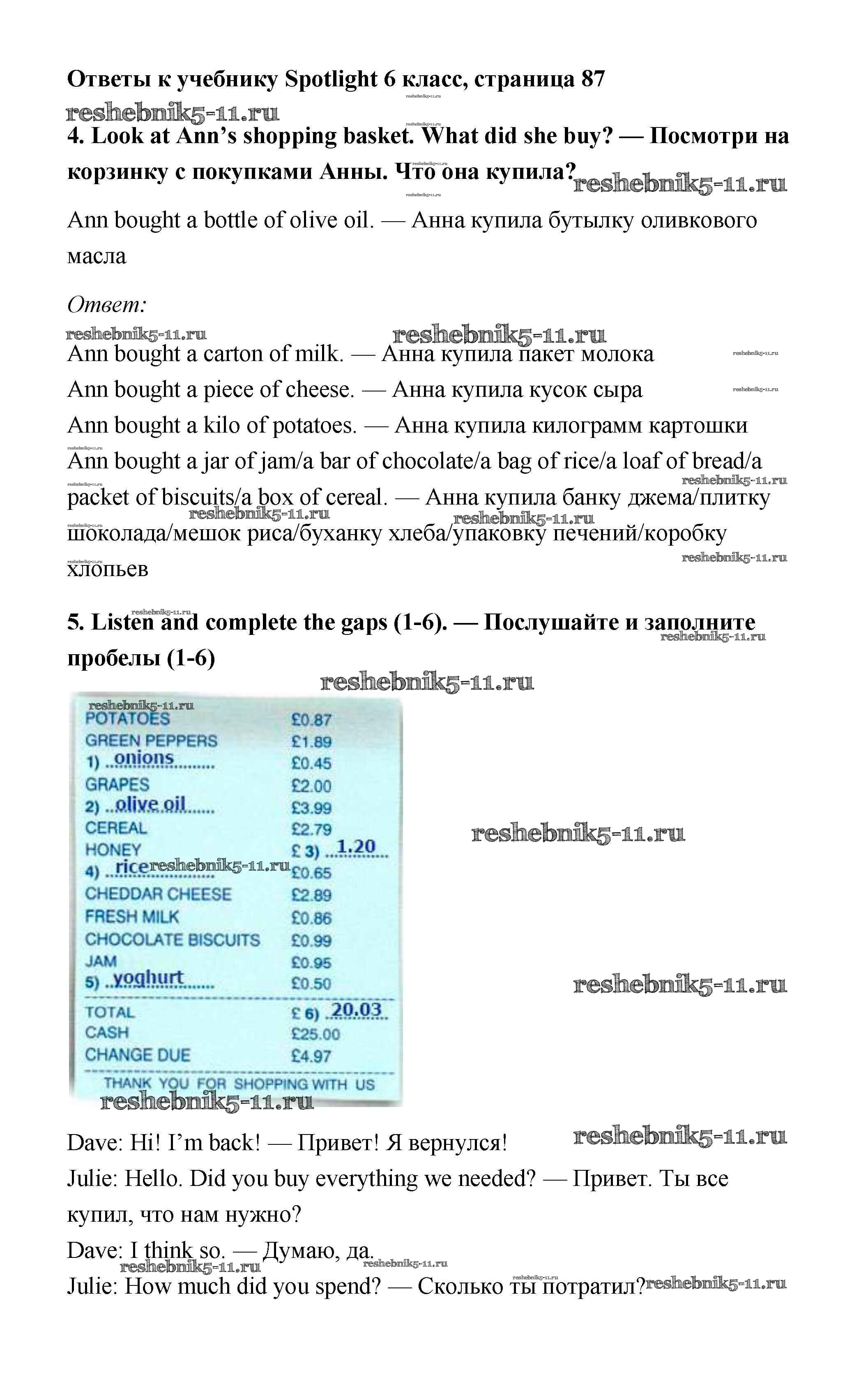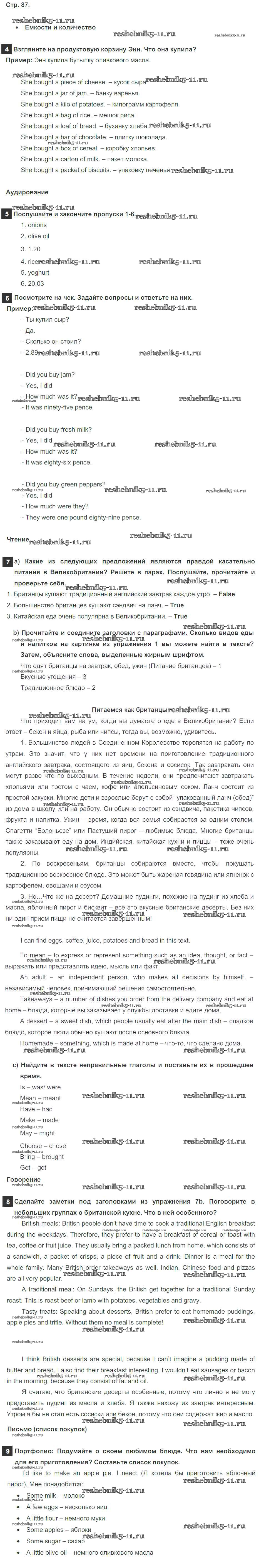 Готовая домашняя работа с ответами по Английскому языку за 6 класс Ваулина, Дули, Эванс, Подоляко Учебник Spotlight Просвещение 2017 ФГОС - Module 9. Food & Refreshments. Страницы 87