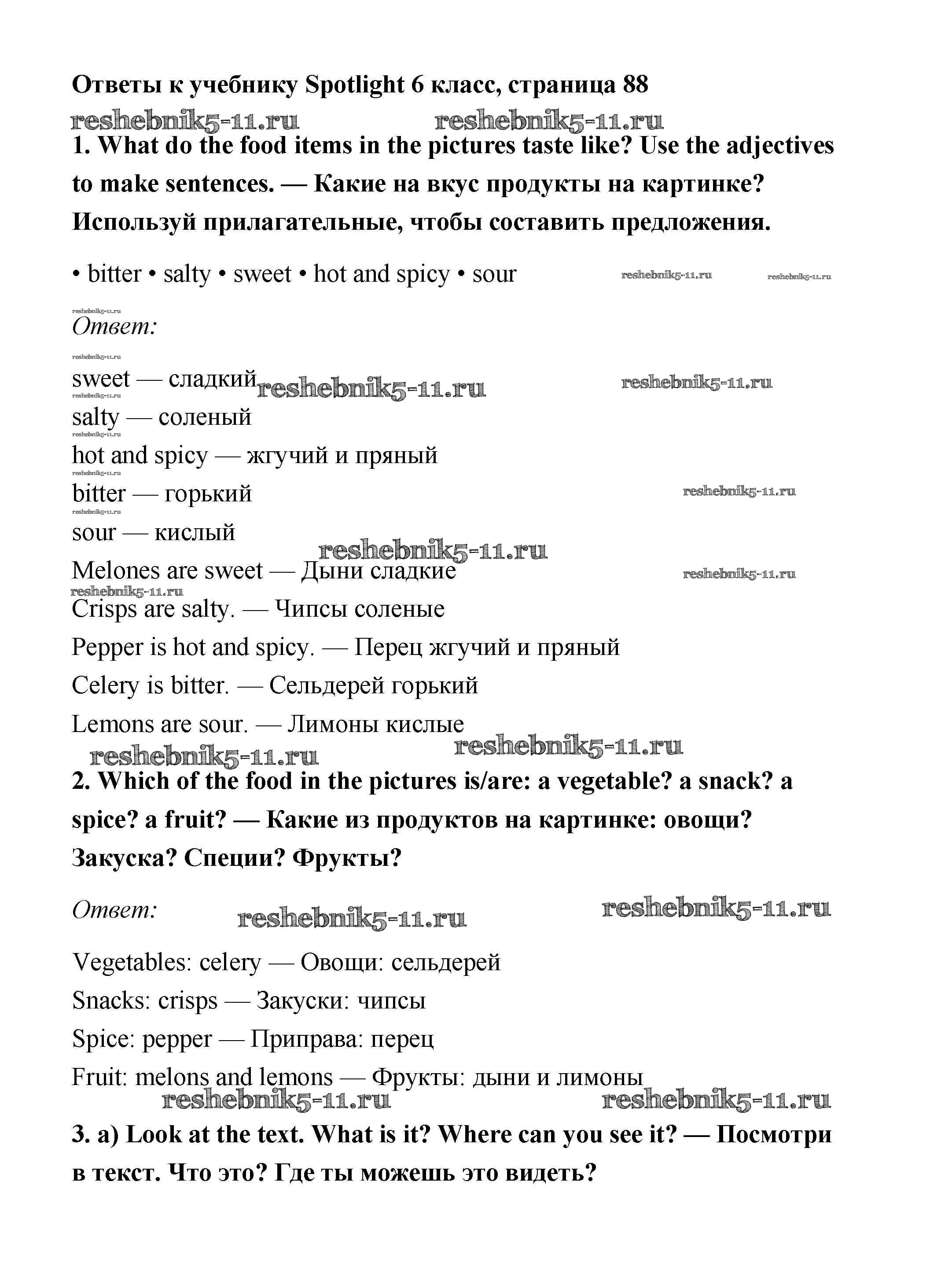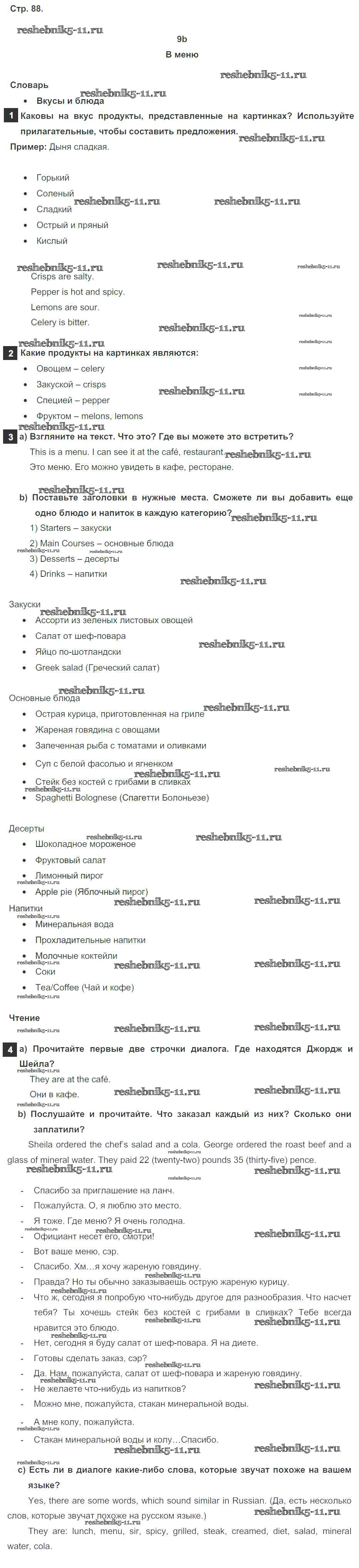 Готовая домашняя работа с ответами по Английскому языку за 6 класс Ваулина, Дули, Эванс, Подоляко Учебник Spotlight Просвещение 2017 ФГОС - Module 9. Food & Refreshments. Страницы 88