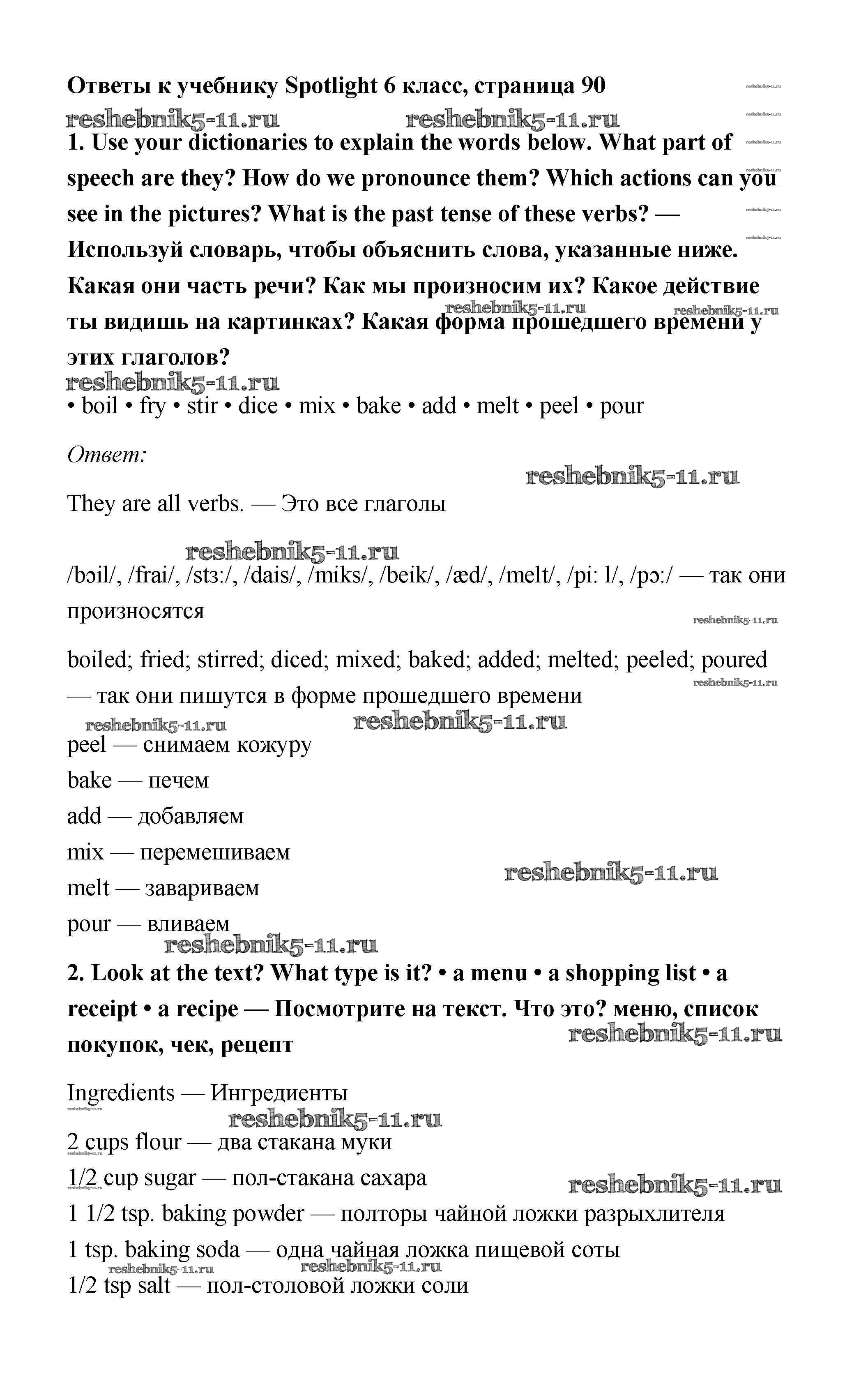 Готовая домашняя работа с ответами по Английскому языку за 6 класс Ваулина, Дули, Эванс, Подоляко Учебник Spotlight Просвещение 2017 ФГОС - Module 9. Food & Refreshments. Страницы 90