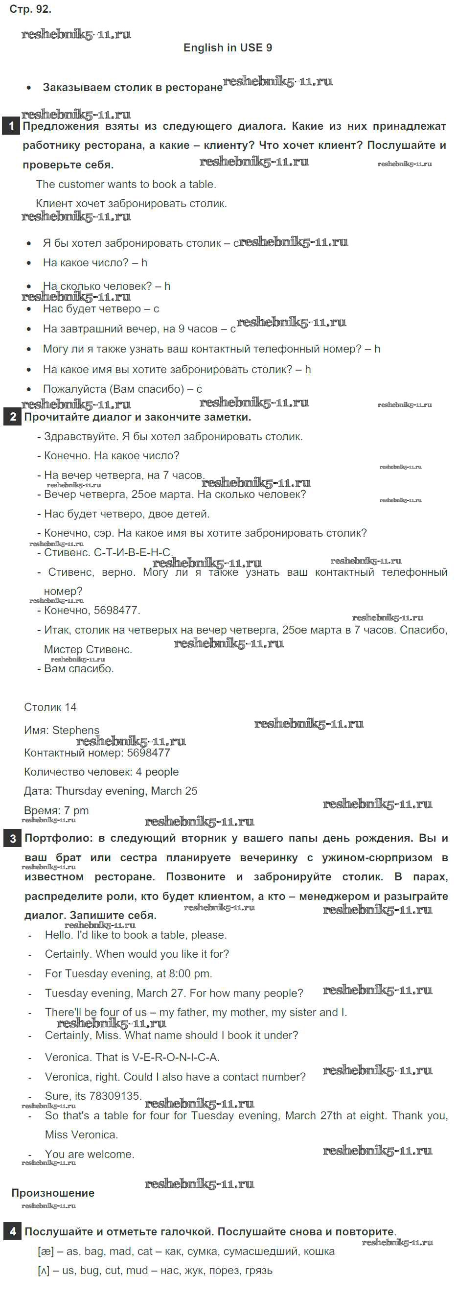 Английский язык за 6 класс Ваулина Учебник Spotlight Просвещение module 9. страница 92