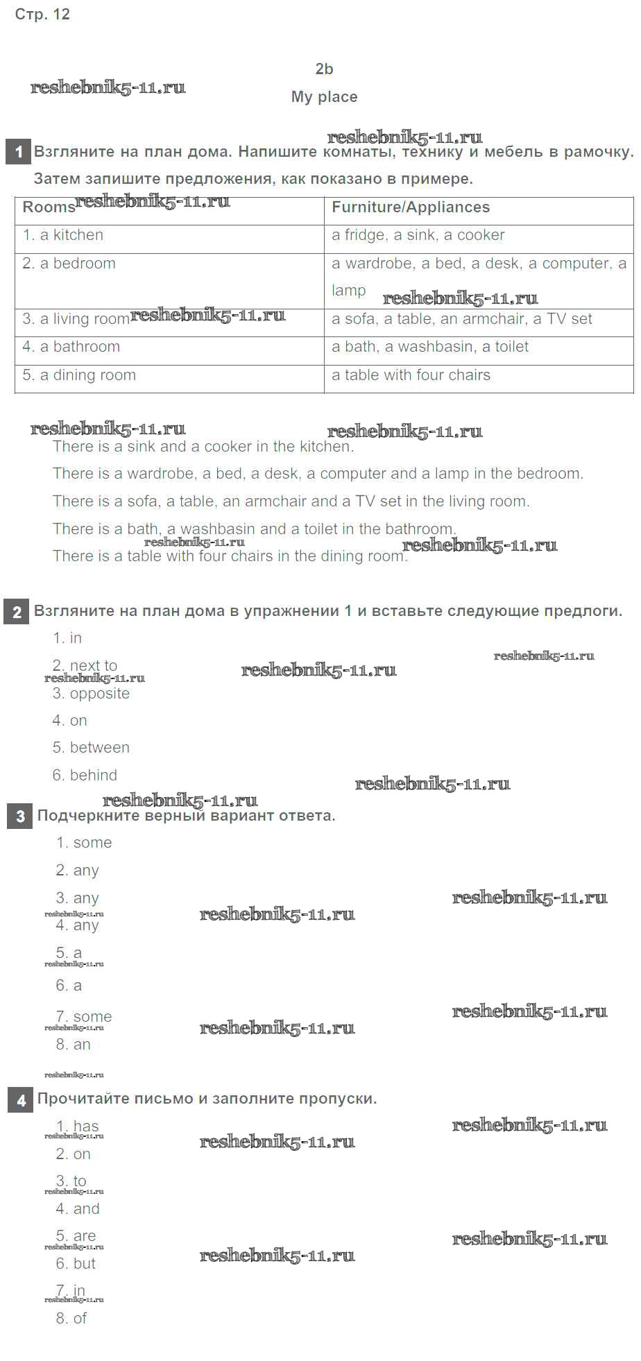 Готовая домашняя работа с ответами по Английскому языку за 6 класс Ваулина, Дули, Подоляко, Эванс Рабочая тетрадь Spotlight Просвещение 2016 ФГОС - Страницы 12