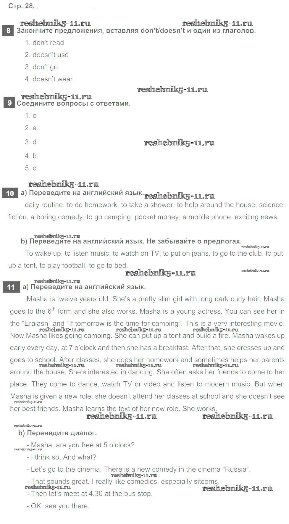Готовая домашняя работа с ответами по Английскому языку за 6 класс Ваулина, Дули, Подоляко, Эванс Рабочая тетрадь Spotlight Просвещение 2016 ФГОС - Страницы 28