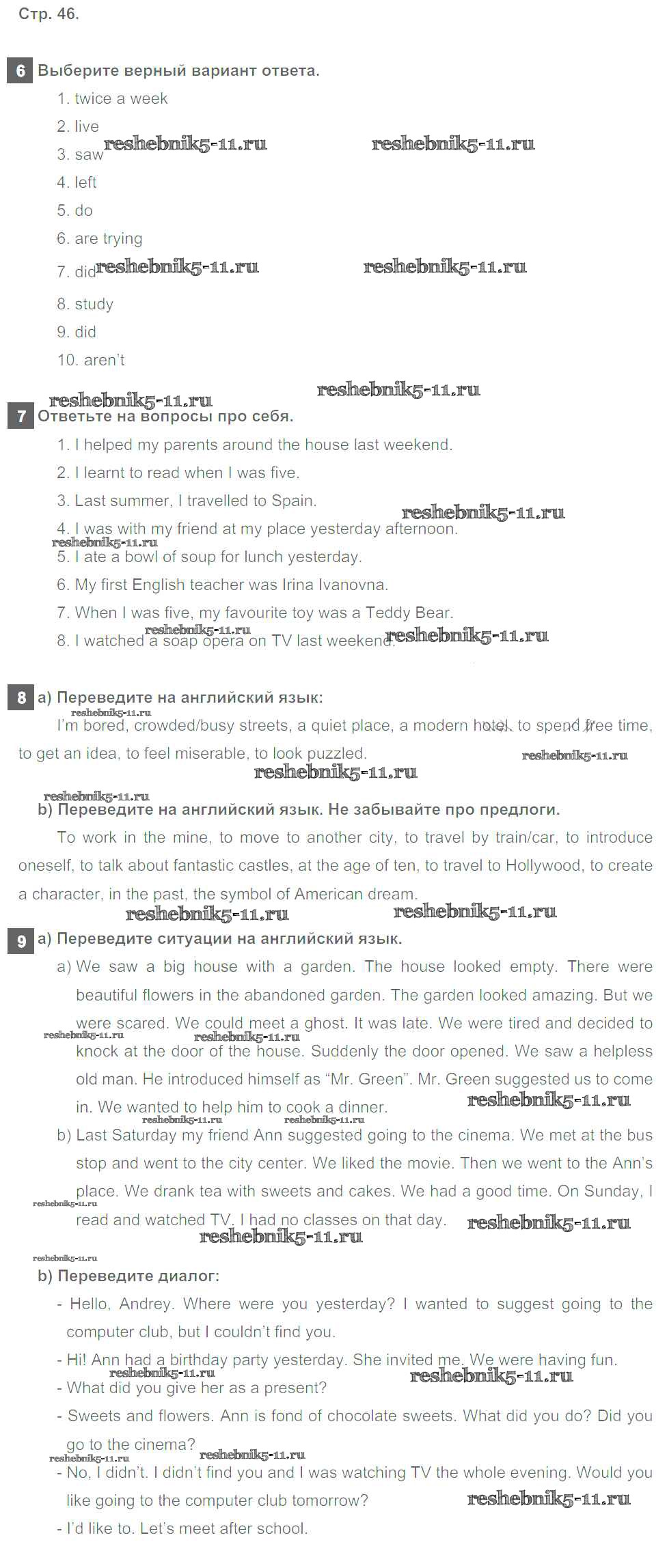Готовая домашняя работа с ответами по Английскому языку за 6 класс Ваулина, Дули, Подоляко, Эванс Рабочая тетрадь Spotlight Просвещение 2016 ФГОС - Страницы 46