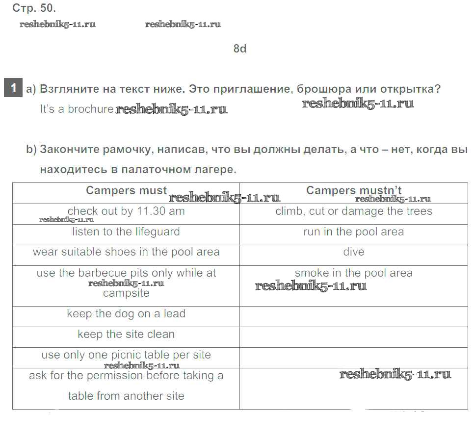 Готовая домашняя работа с ответами по Английскому языку за 6 класс Ваулина, Дули, Подоляко, Эванс Рабочая тетрадь Spotlight Просвещение 2016 ФГОС - Страницы 50