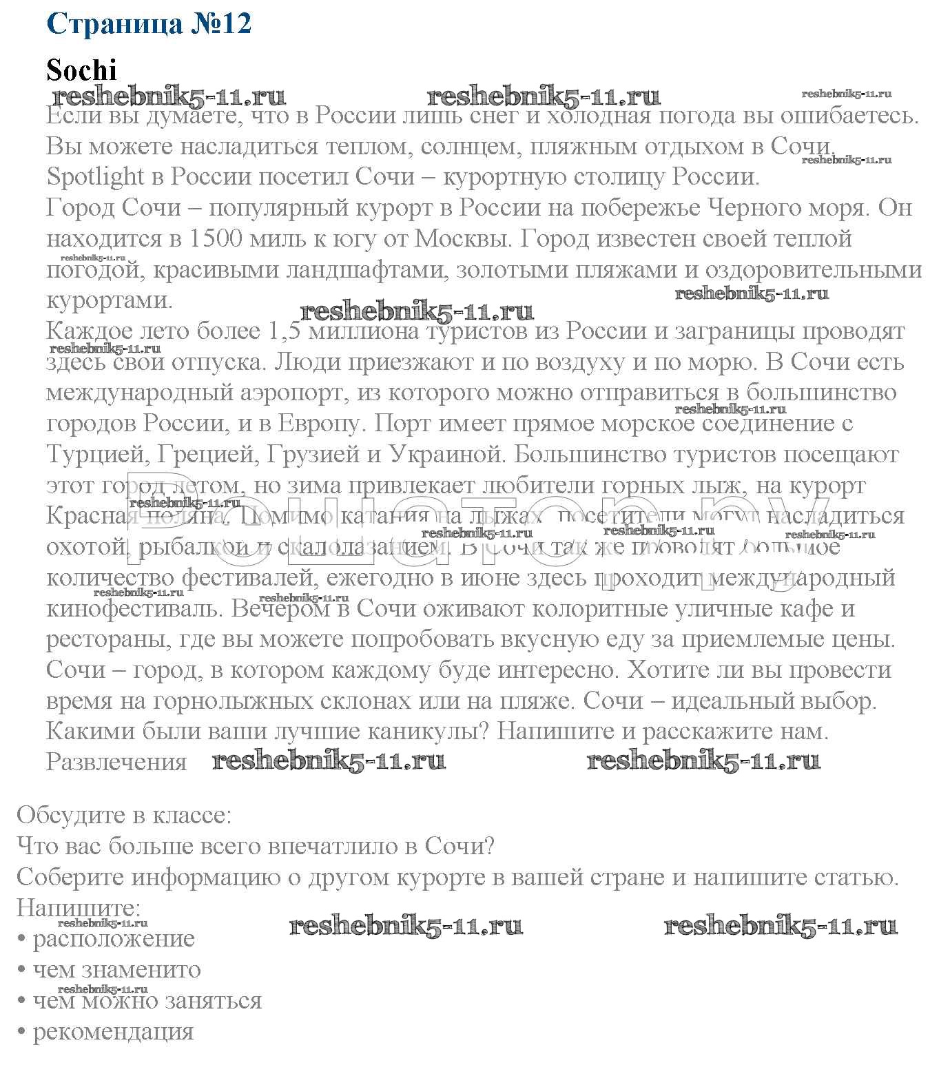 Готовая домашняя работа с ответами по Английскому языку за 6 класс Ваулина, Дули, Подоляко, Эванс Рабочая тетрадь Spotlight Просвещение 2016 ФГОС - Spotlight in Russia 12