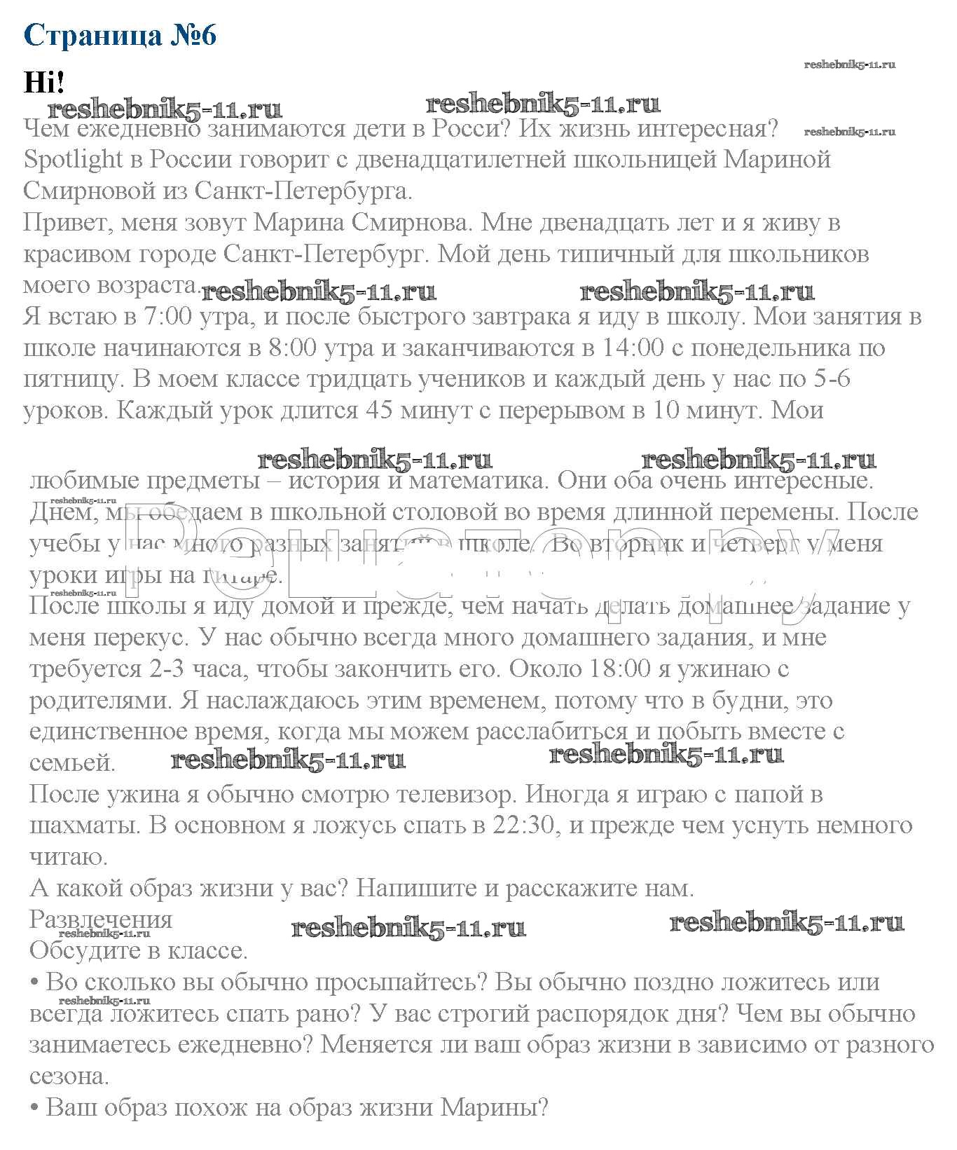 Готовая домашняя работа с ответами по Английскому языку за 6 класс Ваулина, Дули, Подоляко, Эванс Рабочая тетрадь Spotlight Просвещение 2016 ФГОС - Spotlight in Russia 6