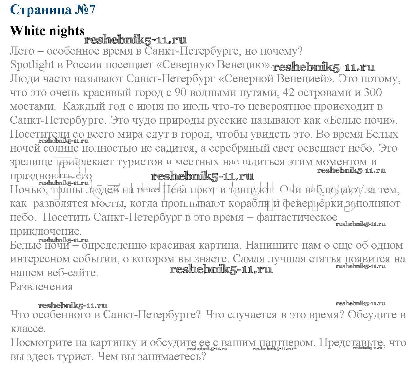 Готовая домашняя работа с ответами по Английскому языку за 6 класс Ваулина, Дули, Подоляко, Эванс Рабочая тетрадь Spotlight Просвещение 2016 ФГОС - Spotlight in Russia 7
