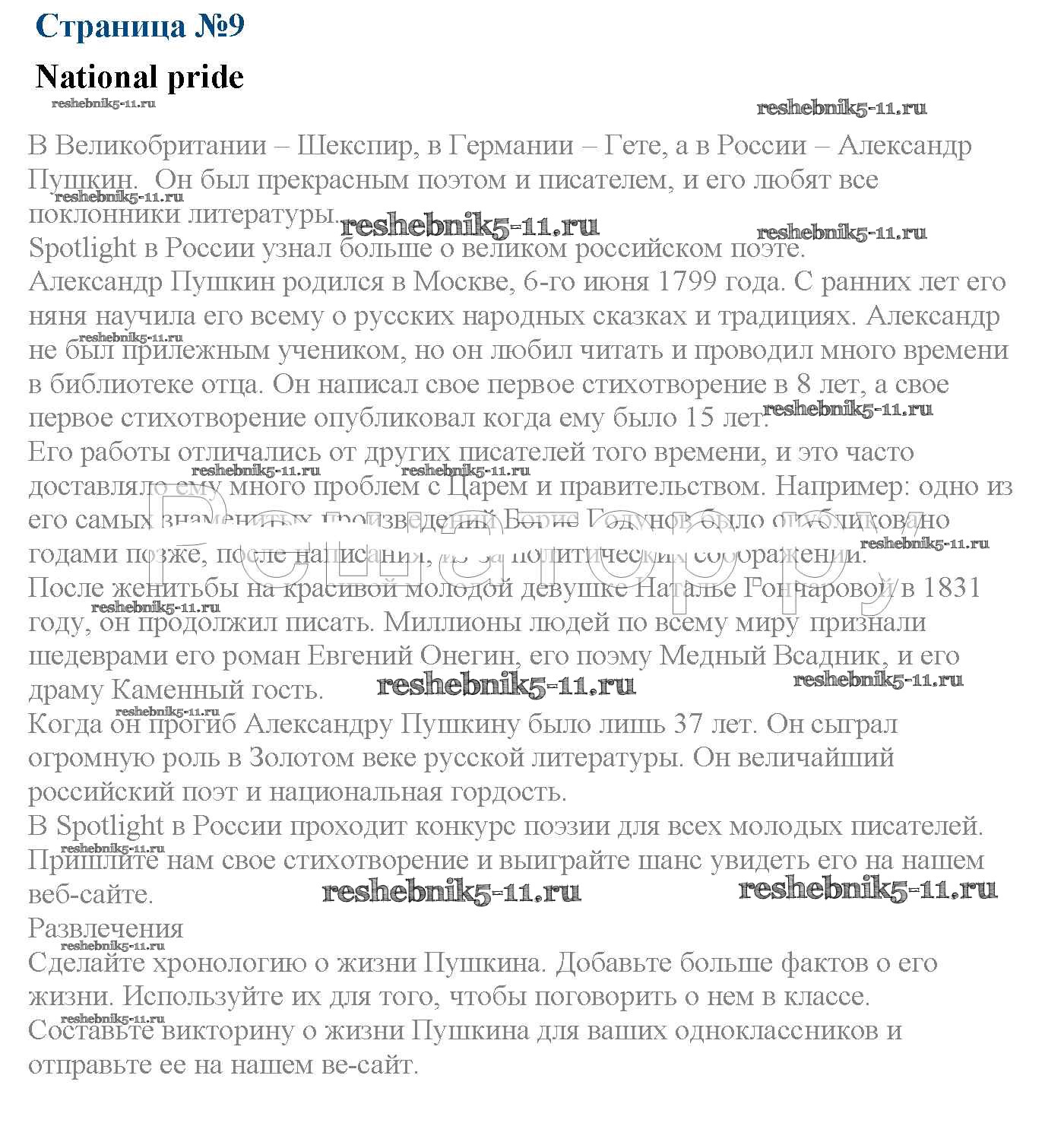 Готовая домашняя работа с ответами по Английскому языку за 6 класс Ваулина, Дули, Подоляко, Эванс Рабочая тетрадь Spotlight Просвещение 2016 ФГОС - Spotlight in Russia 9
