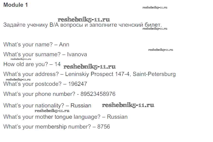 Готовая домашняя работа с ответами по Английскому языку за 6 класс Ваулина, Дули, Подоляко, Эванс Рабочая тетрадь Spotlight Просвещение 2016 ФГОС - Работа в парах. Модули 1