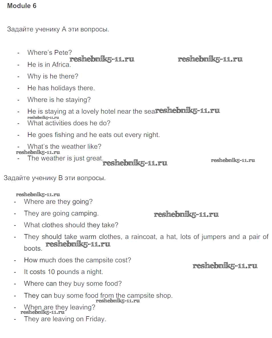 Готовая домашняя работа с ответами по Английскому языку за 6 класс Ваулина, Дули, Подоляко, Эванс Рабочая тетрадь Spotlight Просвещение 2016 ФГОС - Работа в парах. Модули 6