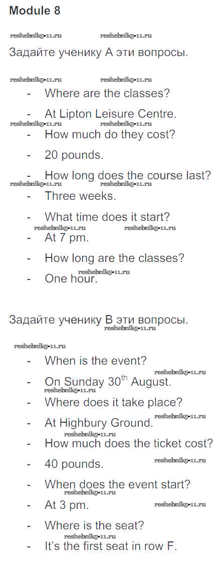 Готовая домашняя работа с ответами по Английскому языку за 6 класс Ваулина, Дули, Подоляко, Эванс Рабочая тетрадь Spotlight Просвещение 2016 ФГОС - Работа в парах. Модули 8