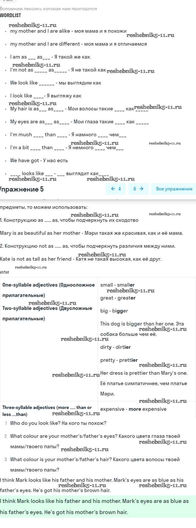 Готовая домашняя работа с ответами по Английскому языку за 6 класс Кузовлев, Лапа, Перегудова Учебник Академический школьный учебник Просвещение 2014 ФГОС - Lesson 2 5