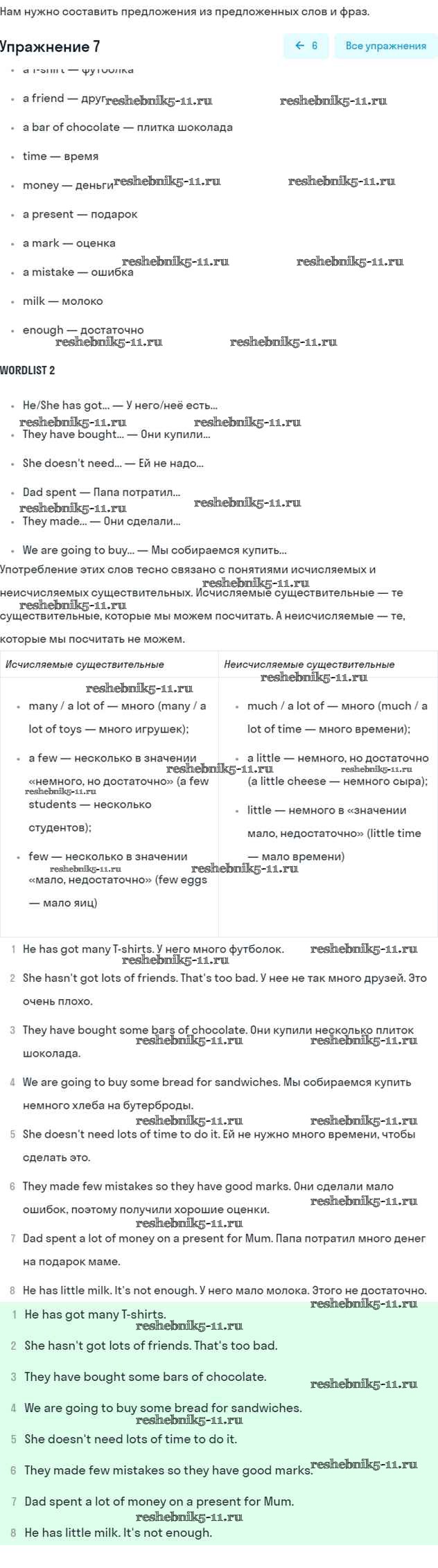Готовая домашняя работа с ответами по Английскому языку за 6 класс Кузовлев, Лапа, Перегудова Учебник Академический школьный учебник Просвещение 2014 ФГОС - Lesson 2 7