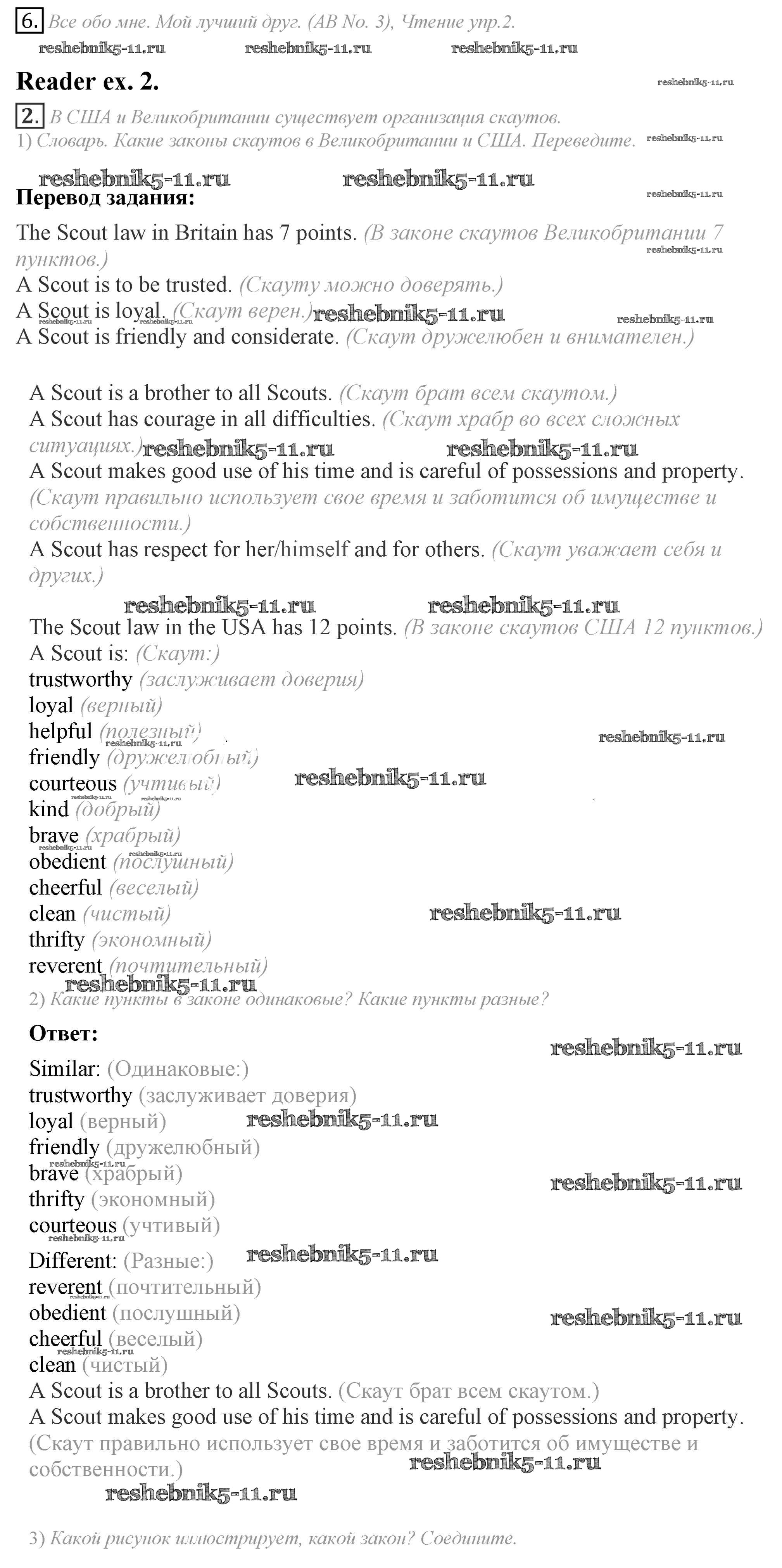 Готовая домашняя работа с ответами по Английскому языку за 6 класс Кузовлев, Лапа, Перегудова Учебник Академический школьный учебник Просвещение 2014 ФГОС - Lesson 2 6