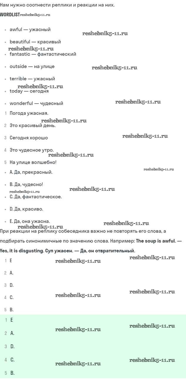 Готовая домашняя работа с ответами по Английскому языку за 6 класс Кузовлев, Лапа, Перегудова Учебник Академический школьный учебник Просвещение 2014 ФГОС - Lesson 5 2