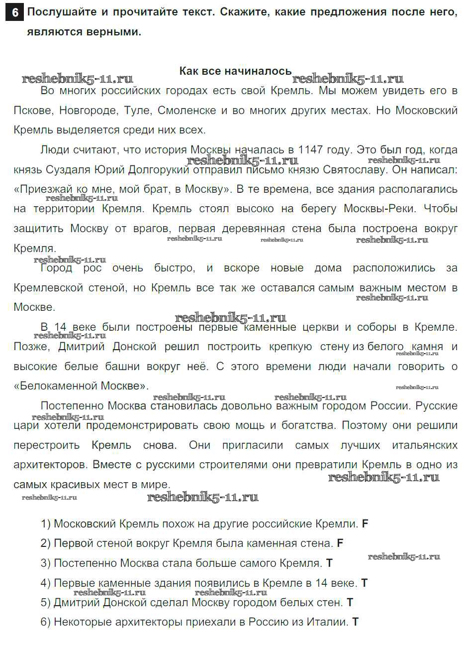 Готовая домашняя работа с ответами по Английскому языку за 6 класс Афанасьева, Михеева, Баранова Учебник Rainbow Часть 1, 2 Дрофа 2017 ФГОС - Step 5 6