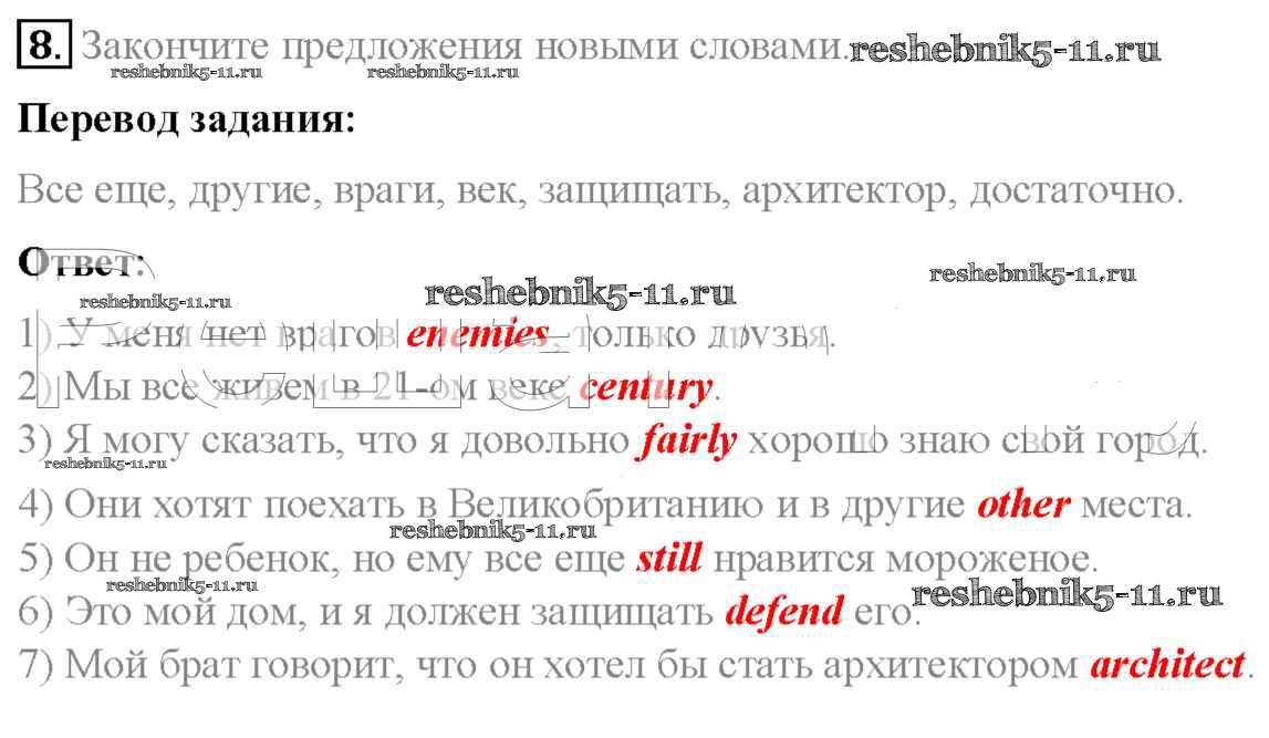 Готовая домашняя работа с ответами по Английскому языку за 6 класс Афанасьева, Михеева, Баранова Учебник Rainbow Часть 1, 2 Дрофа 2017 ФГОС - Step 5 8