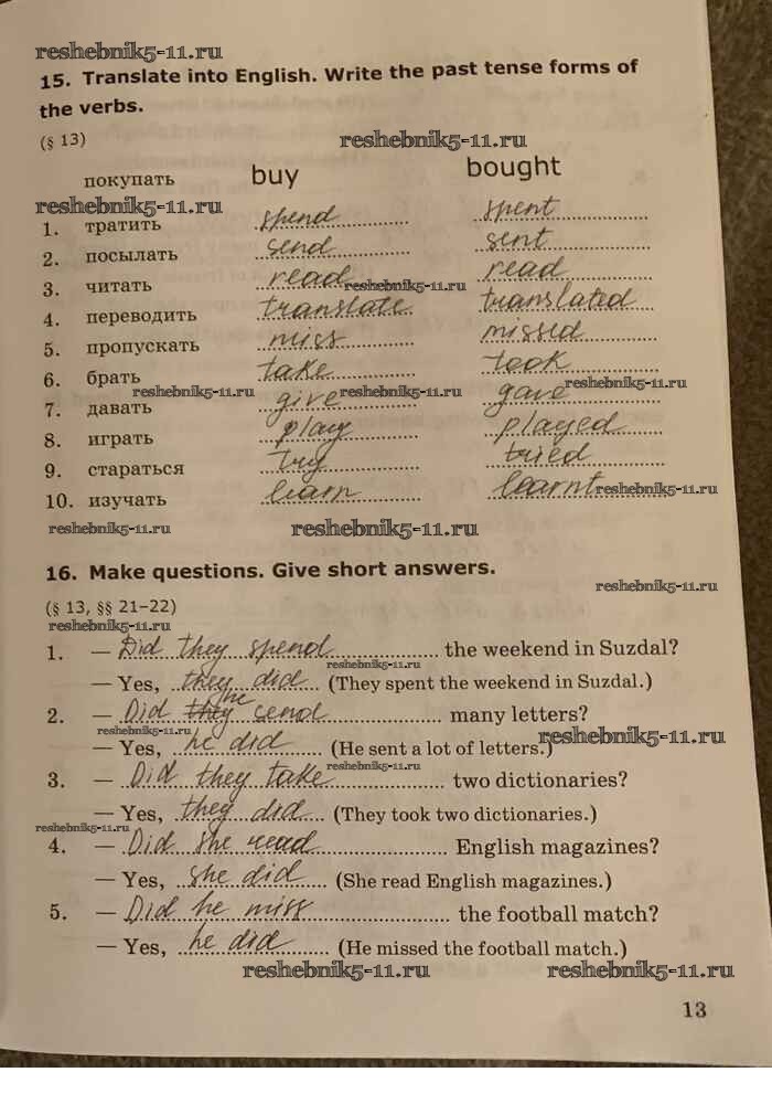 Готовая домашняя работа с ответами по Английскому языку за 5, 6 класс Барашкова Сборник упражнений УМК Часть 1, 2 Экзамен 2017 ФГОС - Unit 1 стр.13