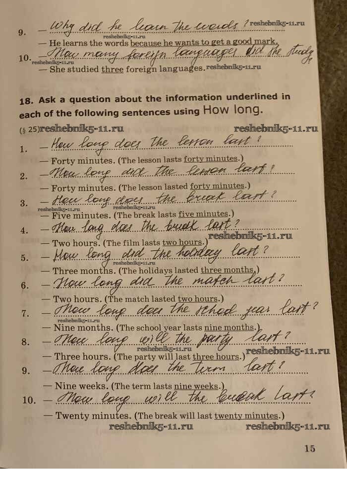 Готовая домашняя работа с ответами по Английскому языку за 5, 6 класс Барашкова Сборник упражнений УМК Часть 1, 2 Экзамен 2017 ФГОС - Unit 1 стр.15