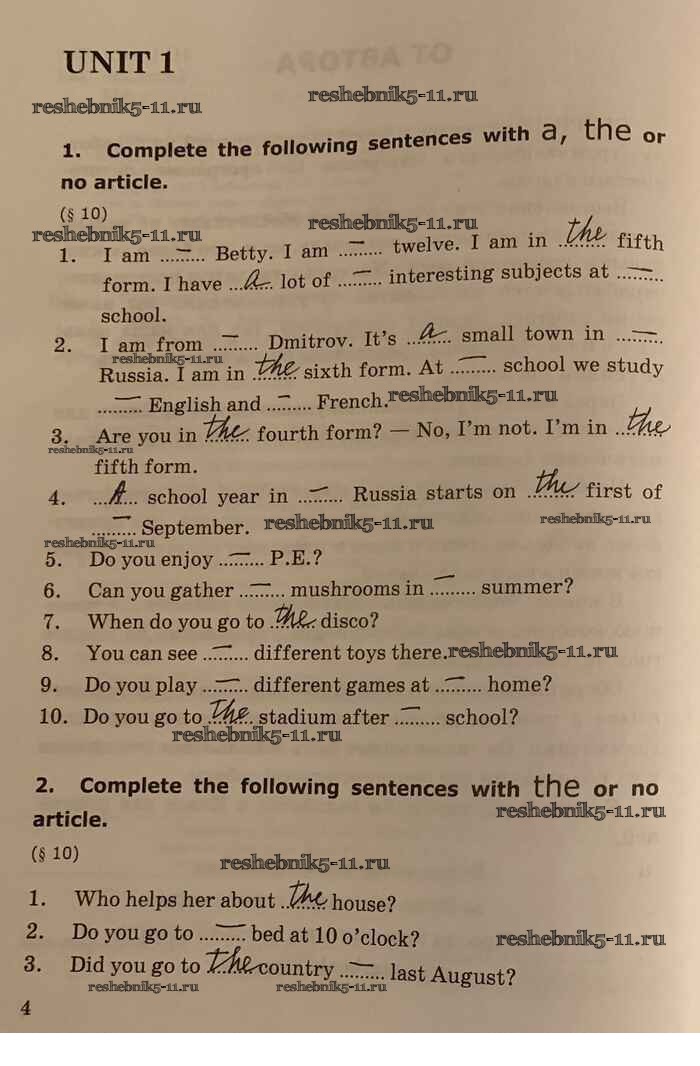 Готовая домашняя работа с ответами по Английскому языку за 5, 6 класс Барашкова Сборник упражнений УМК Часть 1, 2 Экзамен 2017 ФГОС - Unit 1 стр.4