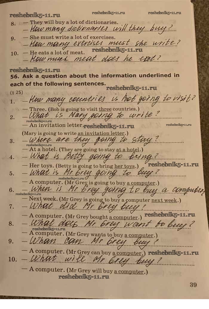 Готовая домашняя работа с ответами по Английскому языку за 5, 6 класс Барашкова Сборник упражнений УМК Часть 1, 2 Экзамен 2017 ФГОС - Unit 2 стр.39