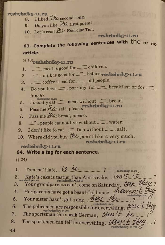Английский язык за 5-6 класс Барашкова Сборник упражнений УМК Экзамен unit 3 стр.44