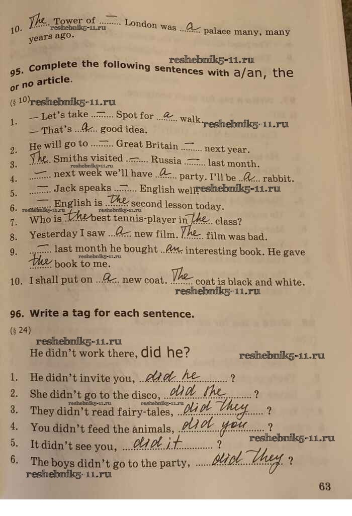 Готовая домашняя работа с ответами по Английскому языку за 5, 6 класс Барашкова Сборник упражнений УМК Часть 1, 2 Экзамен 2017 ФГОС - Unit 4 стр.63