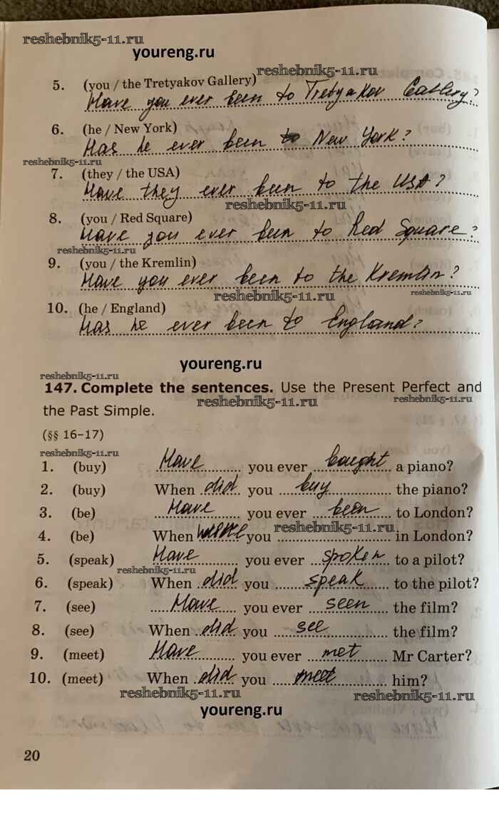 Готовая домашняя работа с ответами по Английскому языку за 5, 6 класс Барашкова Сборник упражнений УМК Часть 1, 2 Экзамен 2017 ФГОС - Unit 5 стр.20