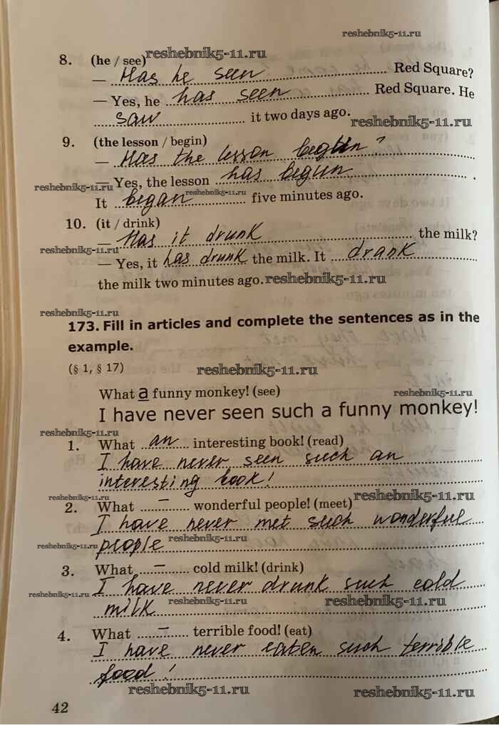 Готовая домашняя работа с ответами по Английскому языку за 5, 6 класс Барашкова Сборник упражнений УМК Часть 1, 2 Экзамен 2017 ФГОС - Unit 6 стр.42