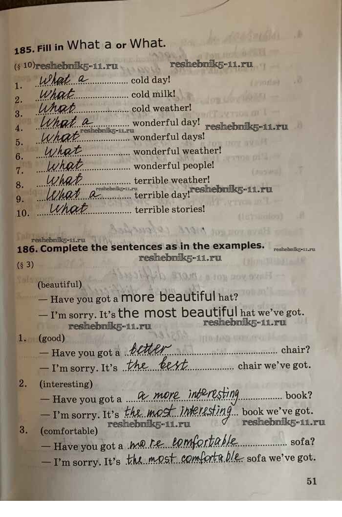 Готовая домашняя работа с ответами по Английскому языку за 5, 6 класс Барашкова Сборник упражнений УМК Часть 1, 2 Экзамен 2017 ФГОС - Unit 7 стр.51