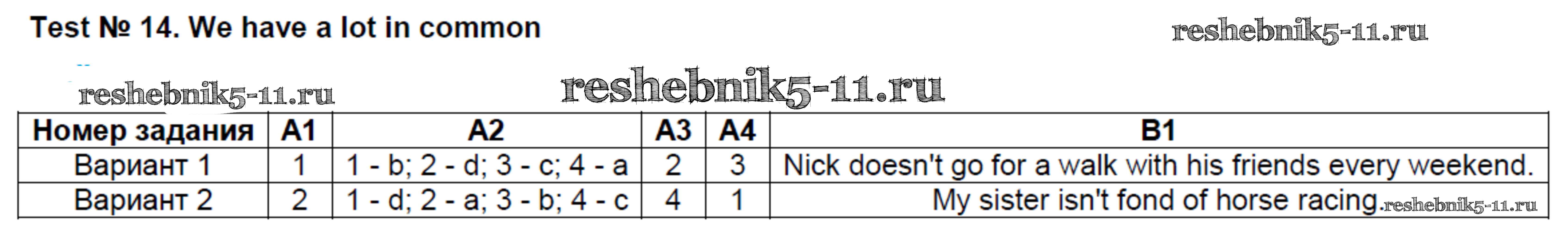 Готовая домашняя работа с ответами по Английскому языку за 6 класс Сухоросова Контрольно-измерительные материалы (КИМ) ВАКО 2017 ФГОС - Тесты 14