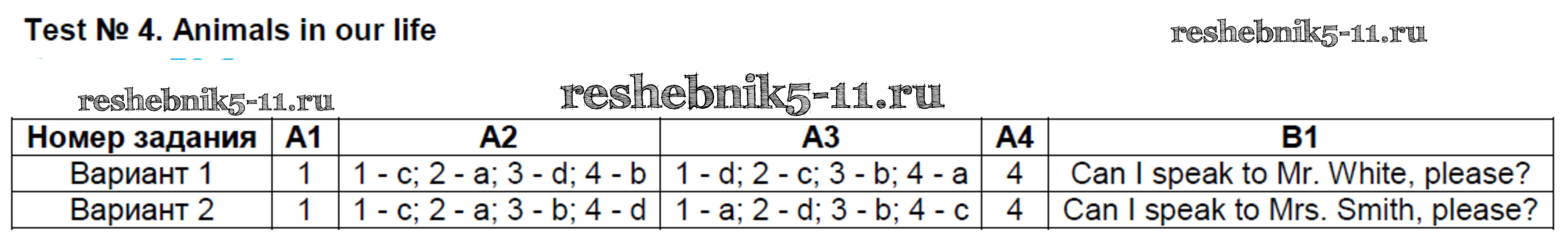 Готовая домашняя работа с ответами по Английскому языку за 6 класс Сухоросова Контрольно-измерительные материалы (КИМ) ВАКО 2017 ФГОС - Тесты 4