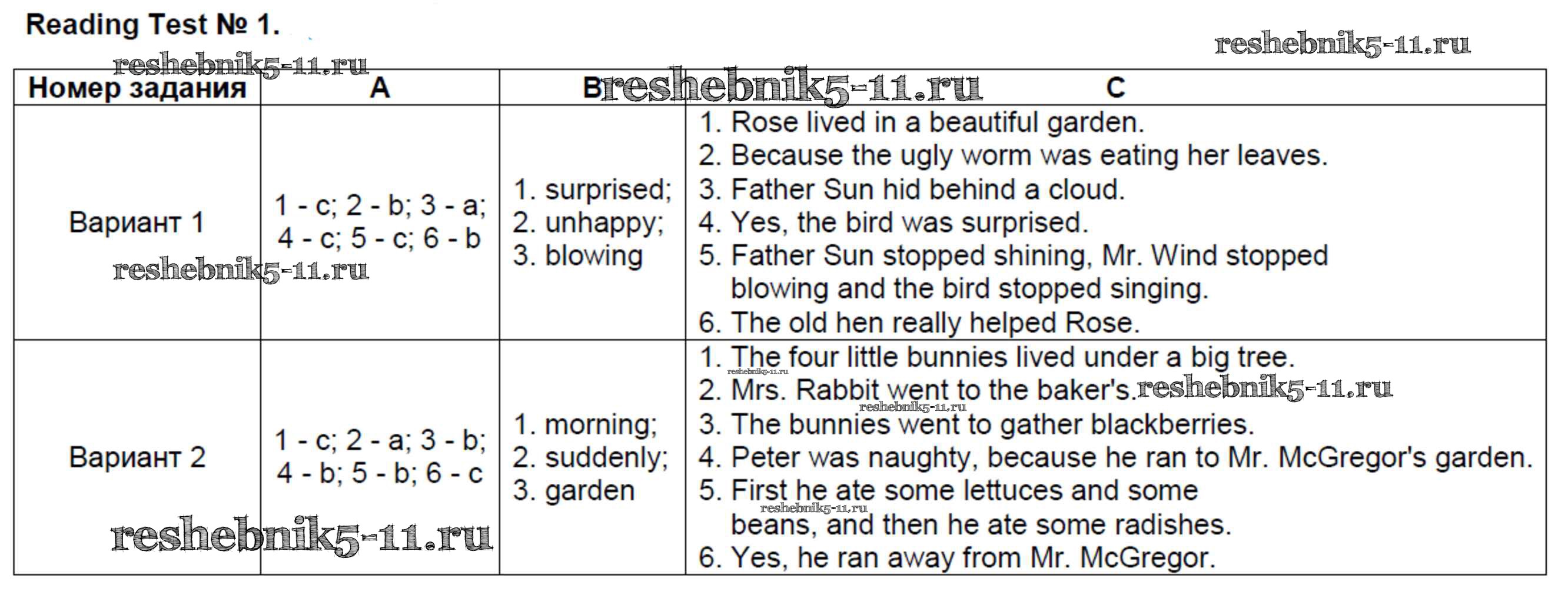 Готовая домашняя работа с ответами по Английскому языку за 6 класс Сухоросова Контрольно-измерительные материалы (КИМ) ВАКО 2017 ФГОС - Reading 1