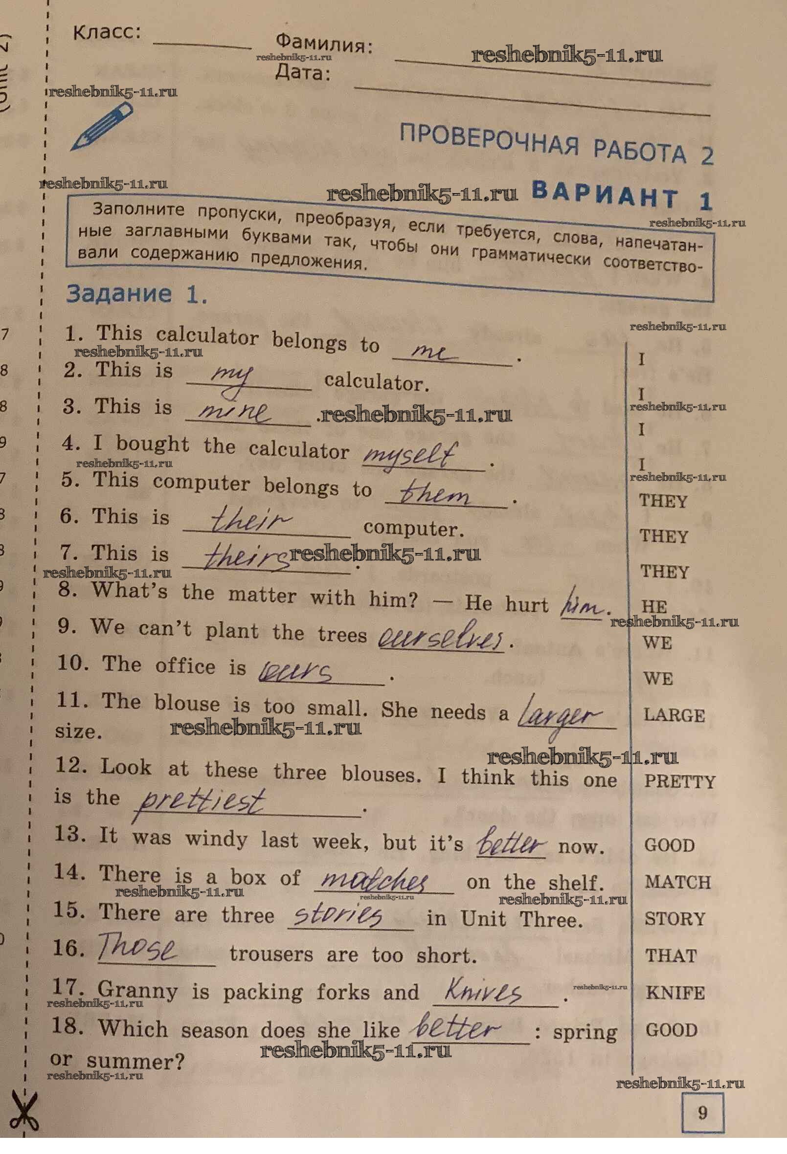 Готовая домашняя работа с ответами по Английскому языку за 6 класс Барашкова Проверочные работы УМК Экзамен 2017 ФГОС - Проверочная работа №2 вариант 1